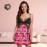 Visage Personnalisé Femmes Déshabillé En Dentelle Rouge À Lèvres D'amour Photo Personnalisée Vêtements De Nuit Cadeau De Saint Valentin