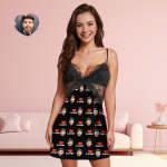 Visage Personnalisé Femmes Déshabillé En Dentelle Amant Photo Personnalisée Vêtements De Nuit Cadeau De Saint Valentin