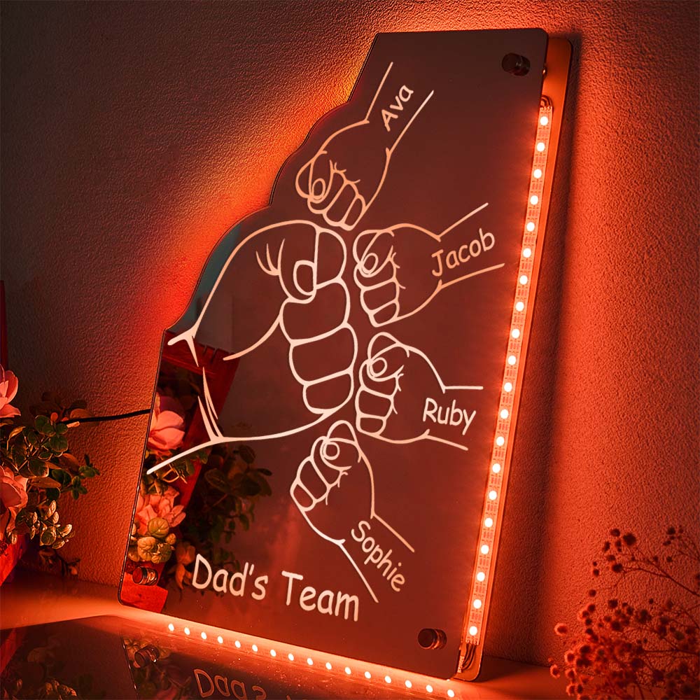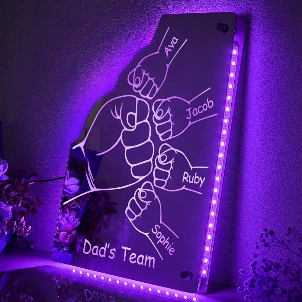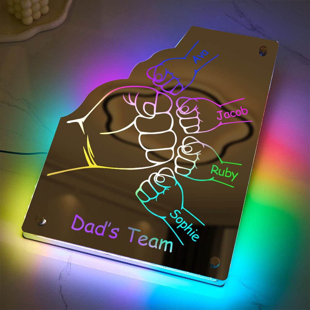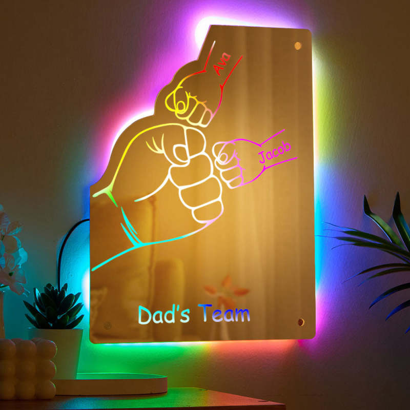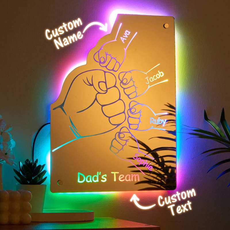 Lumière De Miroir Personnalisée Avec Nom De Famille, Lumière De Miroir Personnalisée Pour Père Cadeau d'anniversaire