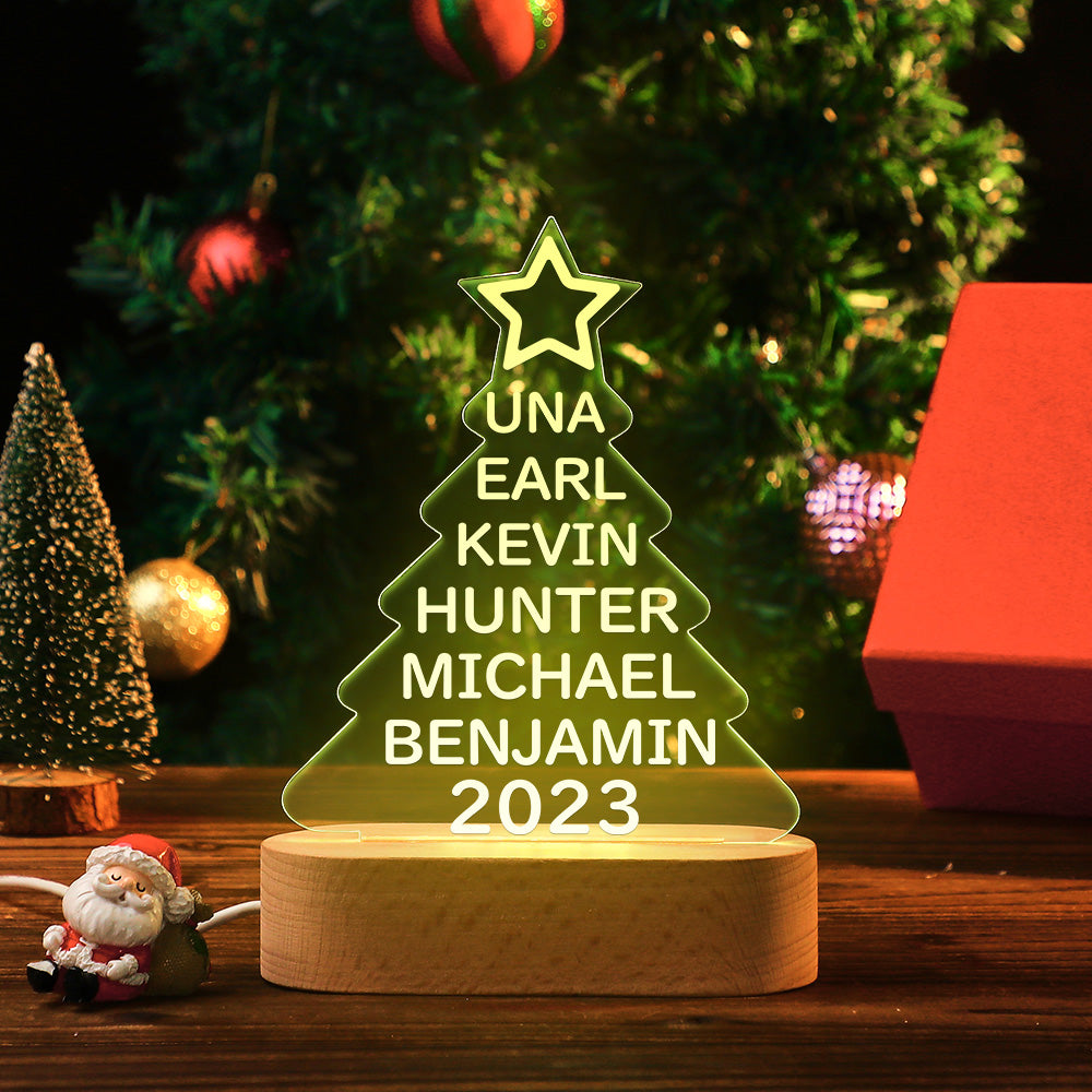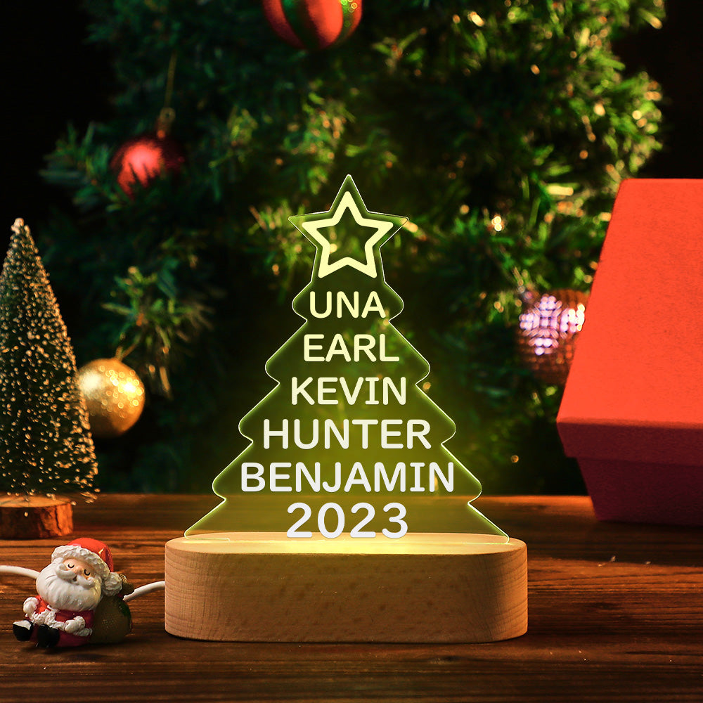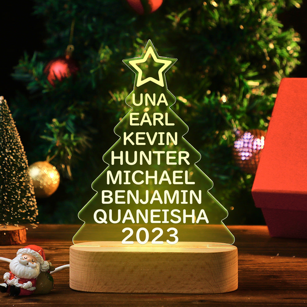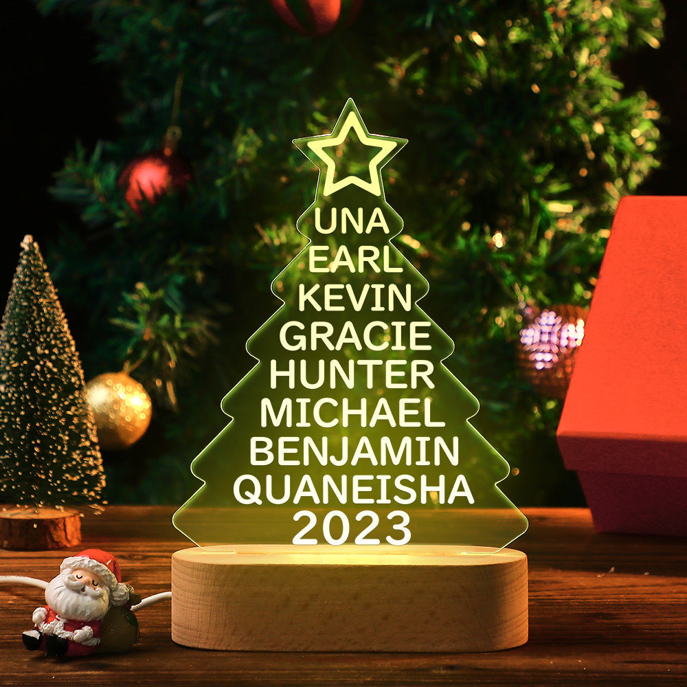 Lampe Acrylique Colorée Avec Noms De Famille Personnalisés, Veilleuse En Forme D'arbre De Noël, Cadeaux De Noël