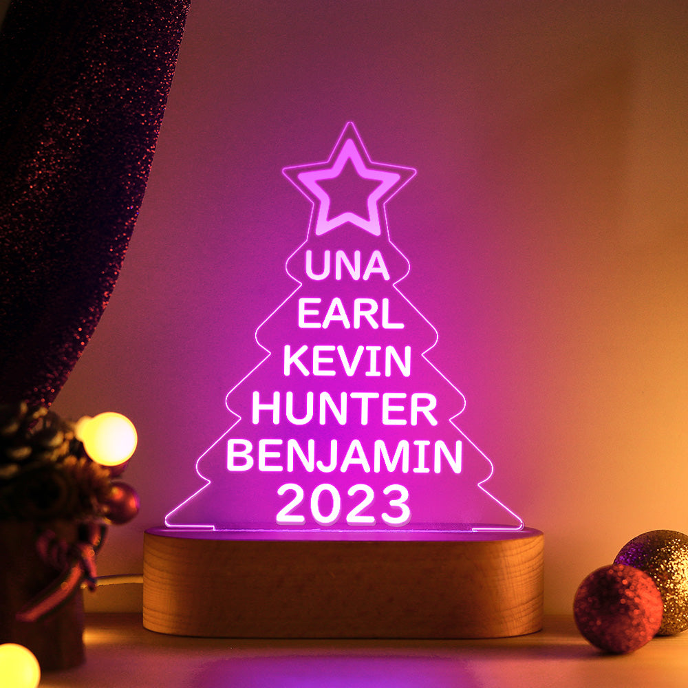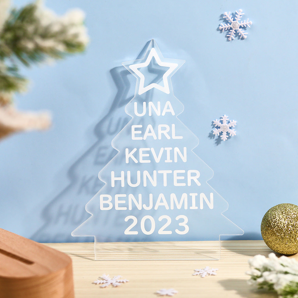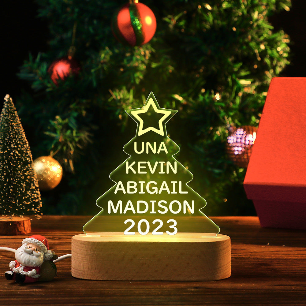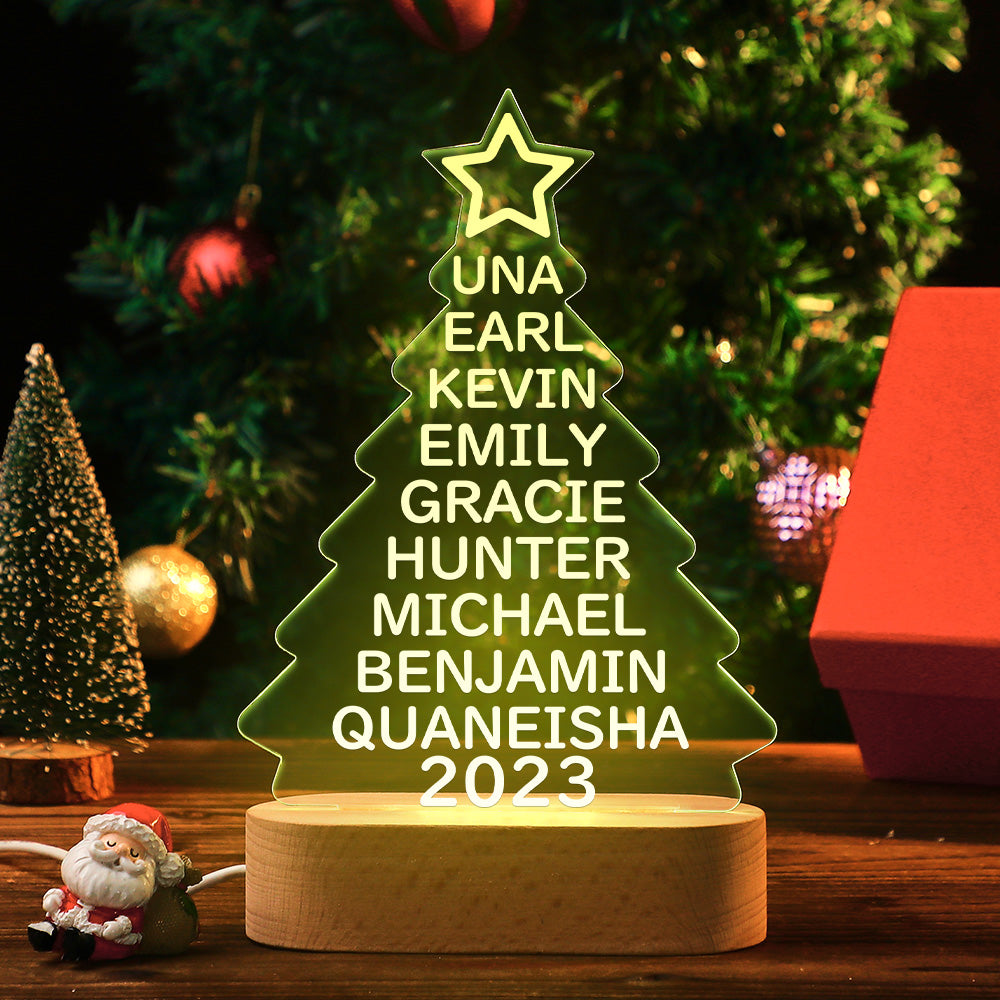 Lampe Acrylique Colorée Avec Noms De Famille Personnalisés, Veilleuse En Forme D'arbre De Noël, Cadeaux De Noël
