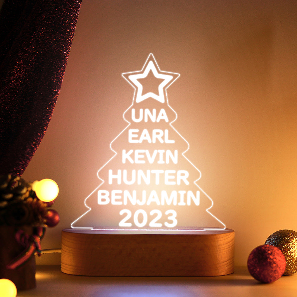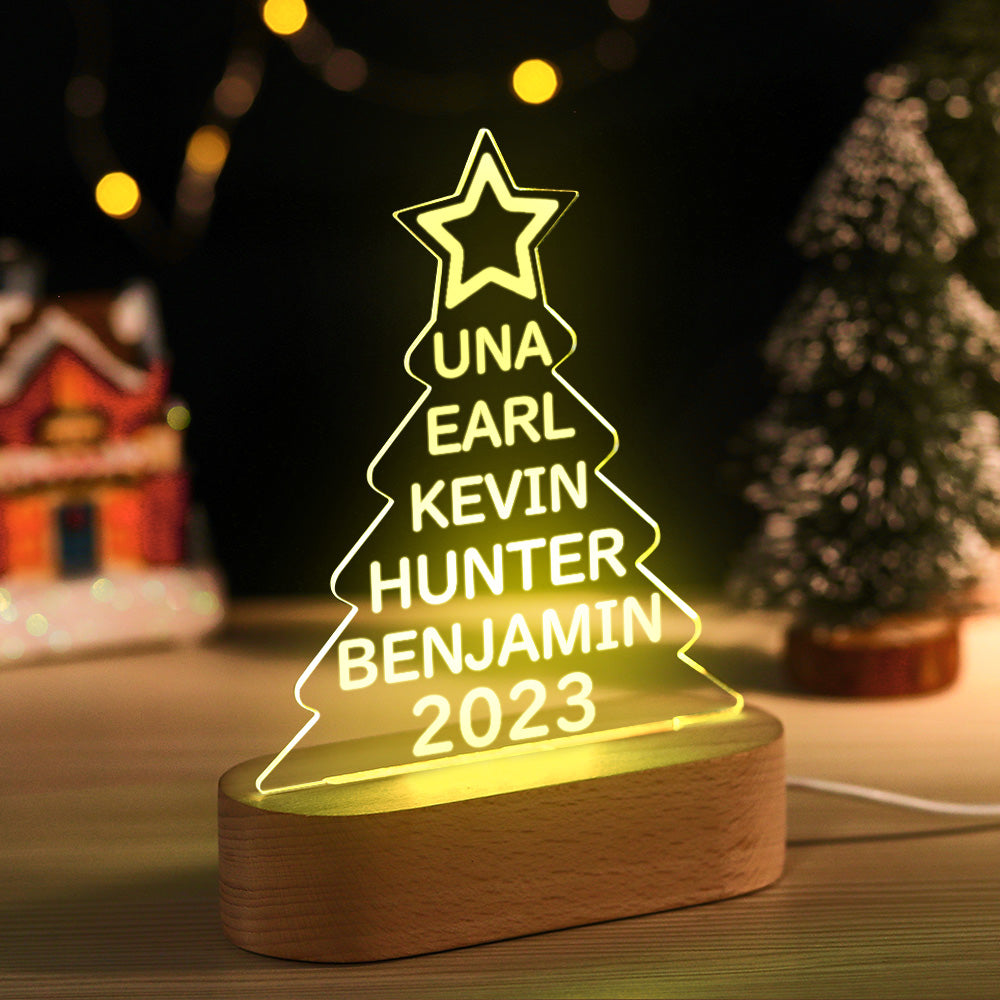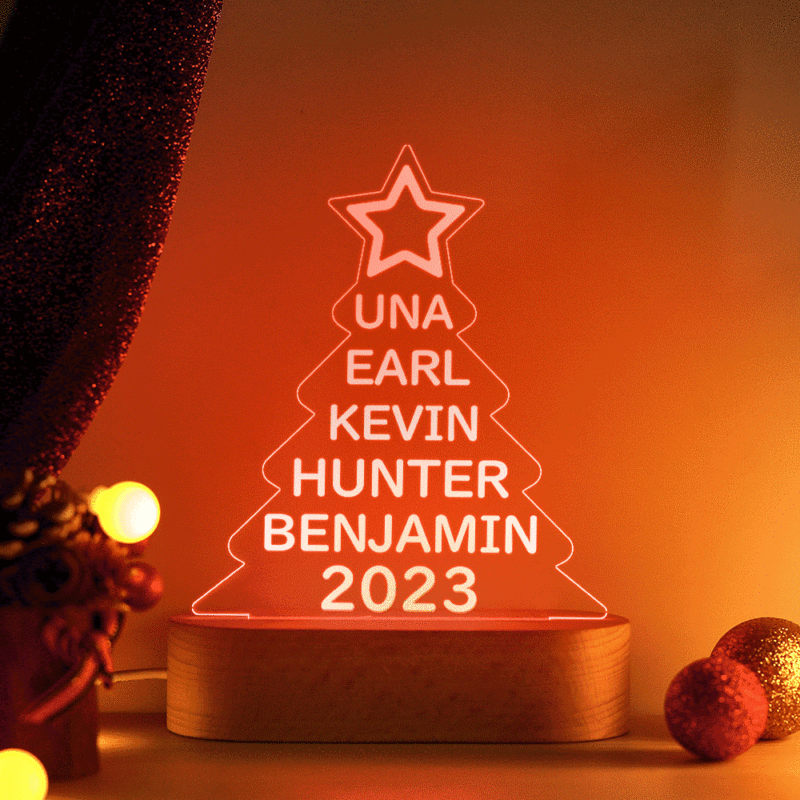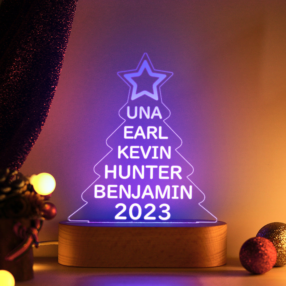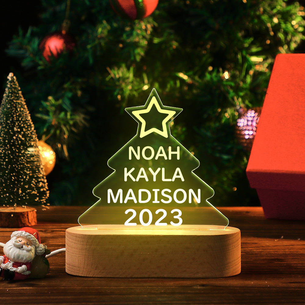 Lampe Acrylique Colorée Avec Noms De Famille Personnalisés, Veilleuse En Forme D'arbre De Noël, Cadeaux De Noël
