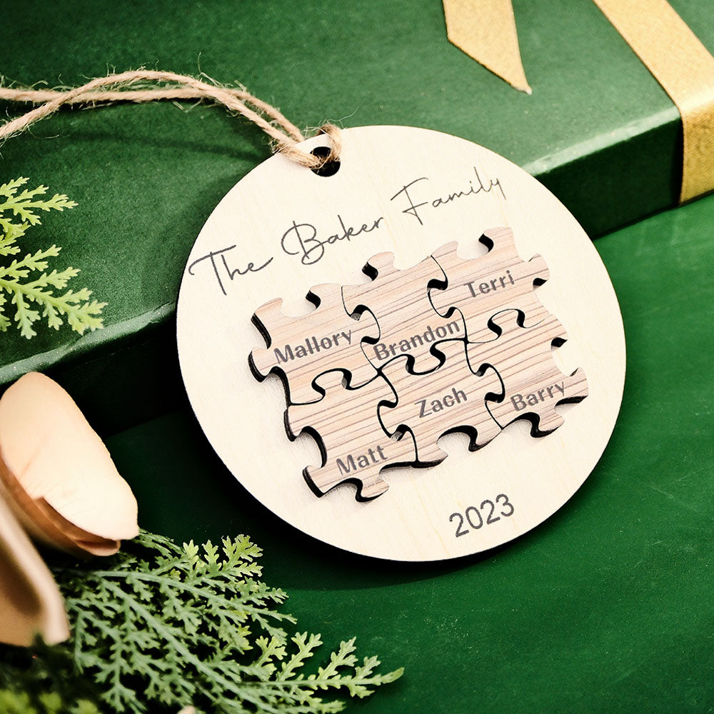 Puzzle Familial Personnalisé Avec Nom, Ornement De Noël, Décor En Bois Personnalisé Pour Le Jour De Noël