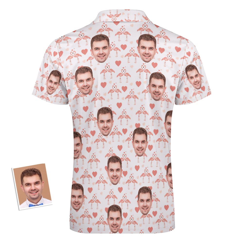 Polo Personnalisé Flamingo Love Pour Hommes, Visage Personnalisé, Polo Drôle Avec Fermeture Éclair