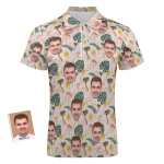 Polo Personnalisé Flamingo Wild Floral Pour Hommes, Visage Personnalisé, Polo Drôle Avec Fermeture Éclair