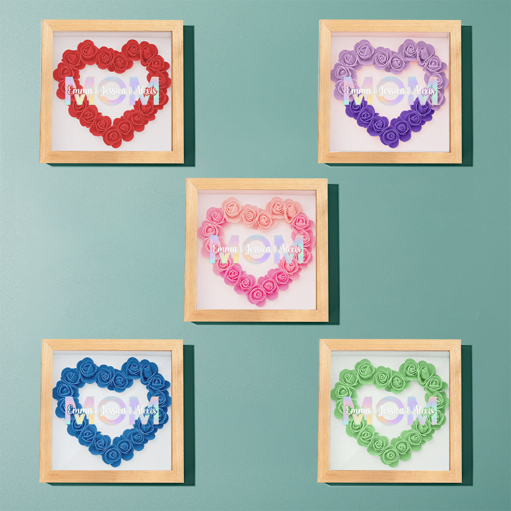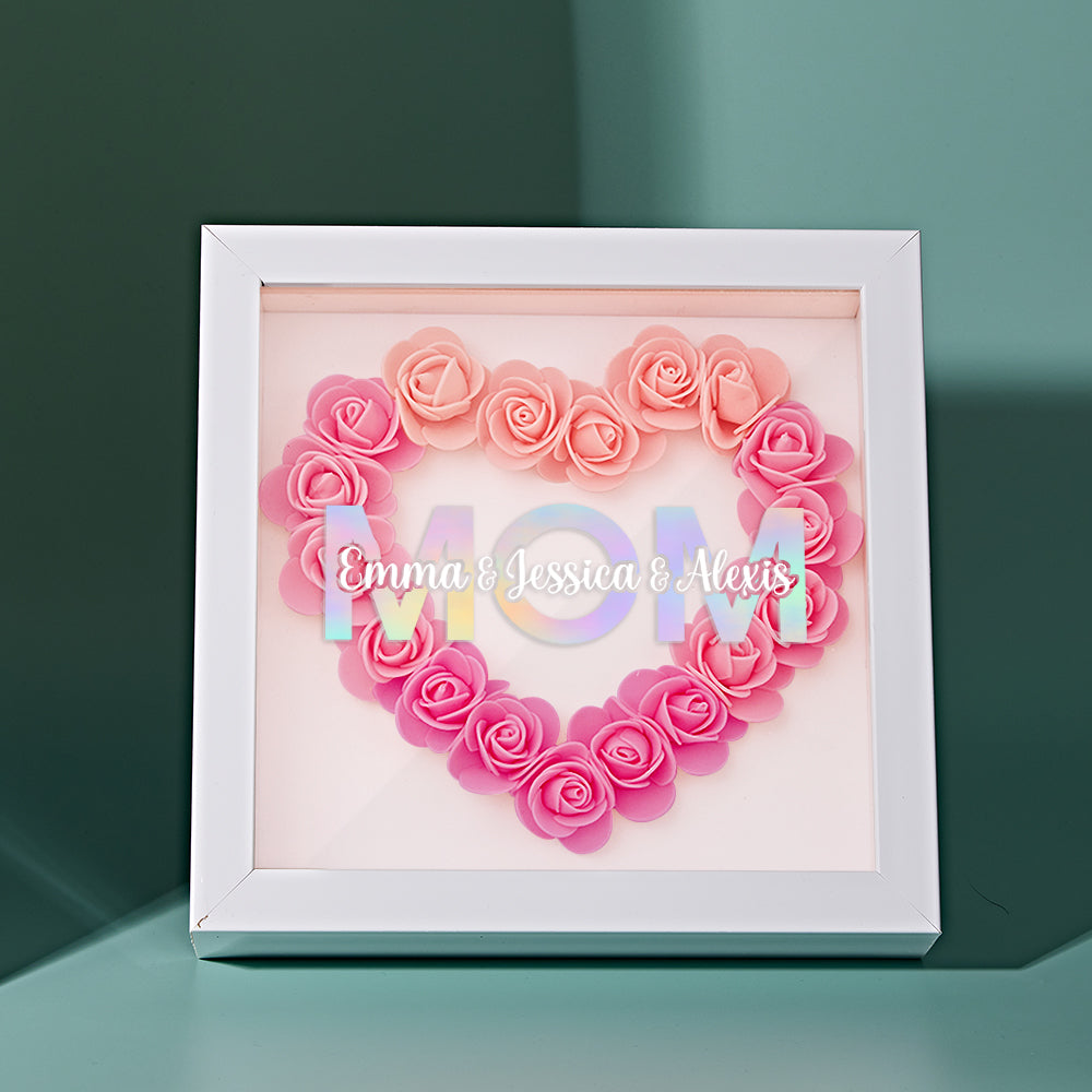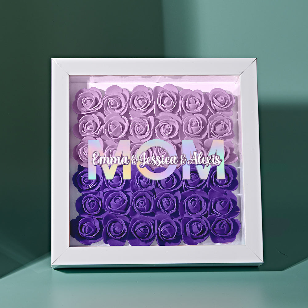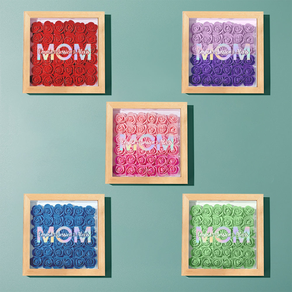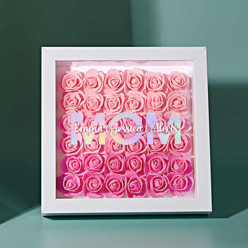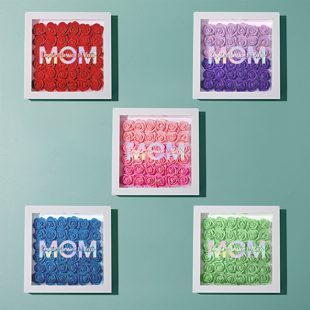 Cadre De Boîte D'ombre De Fleur Personnalisé Avec Nom, Cadeau De Fête Des Mères