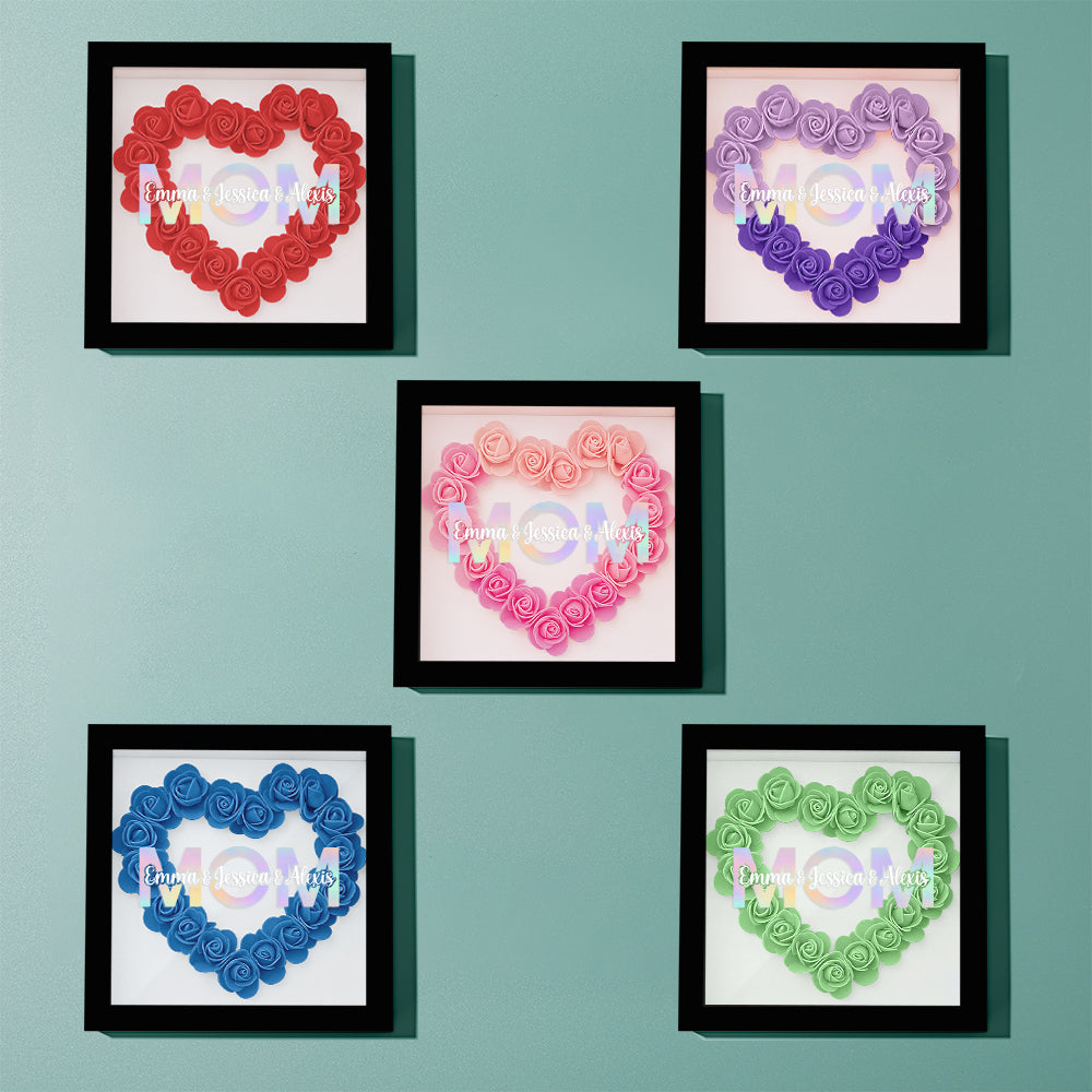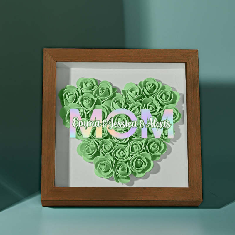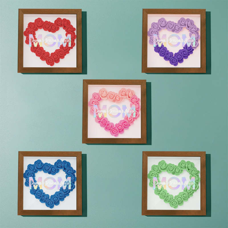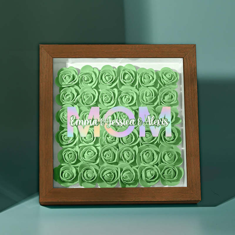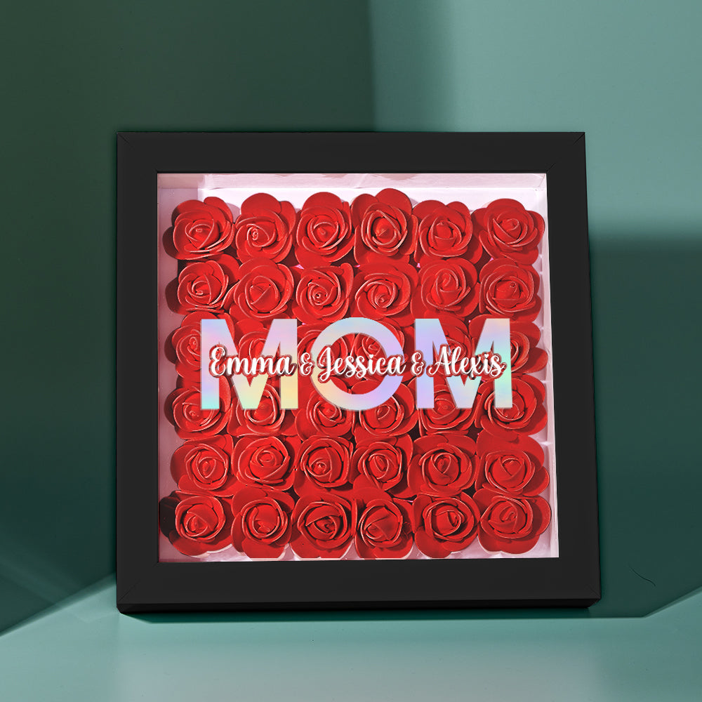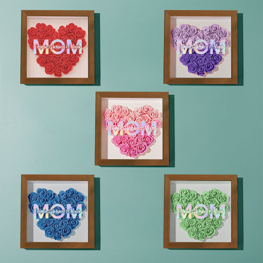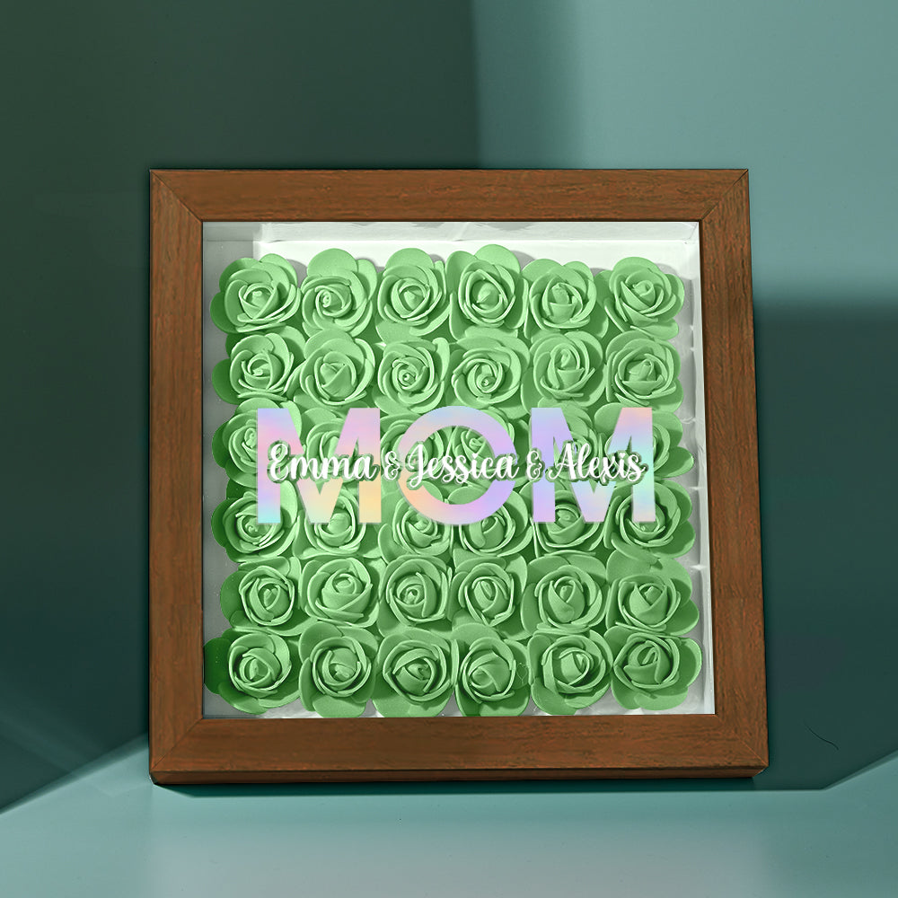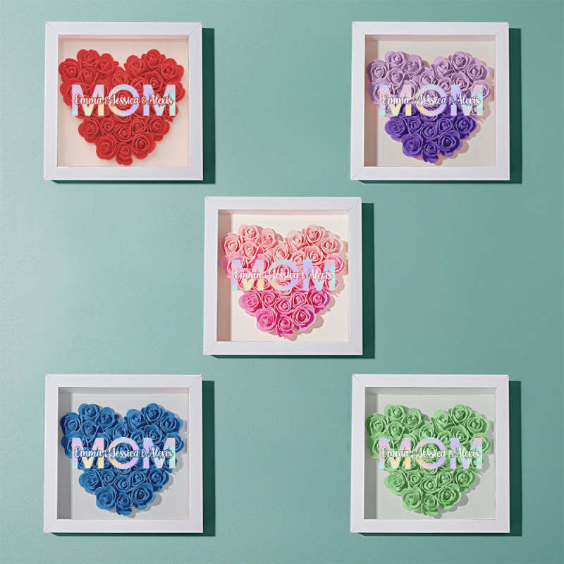 Cadre De Boîte D'ombre De Fleur Personnalisé Avec Nom, Cadeau De Fête Des Mères
