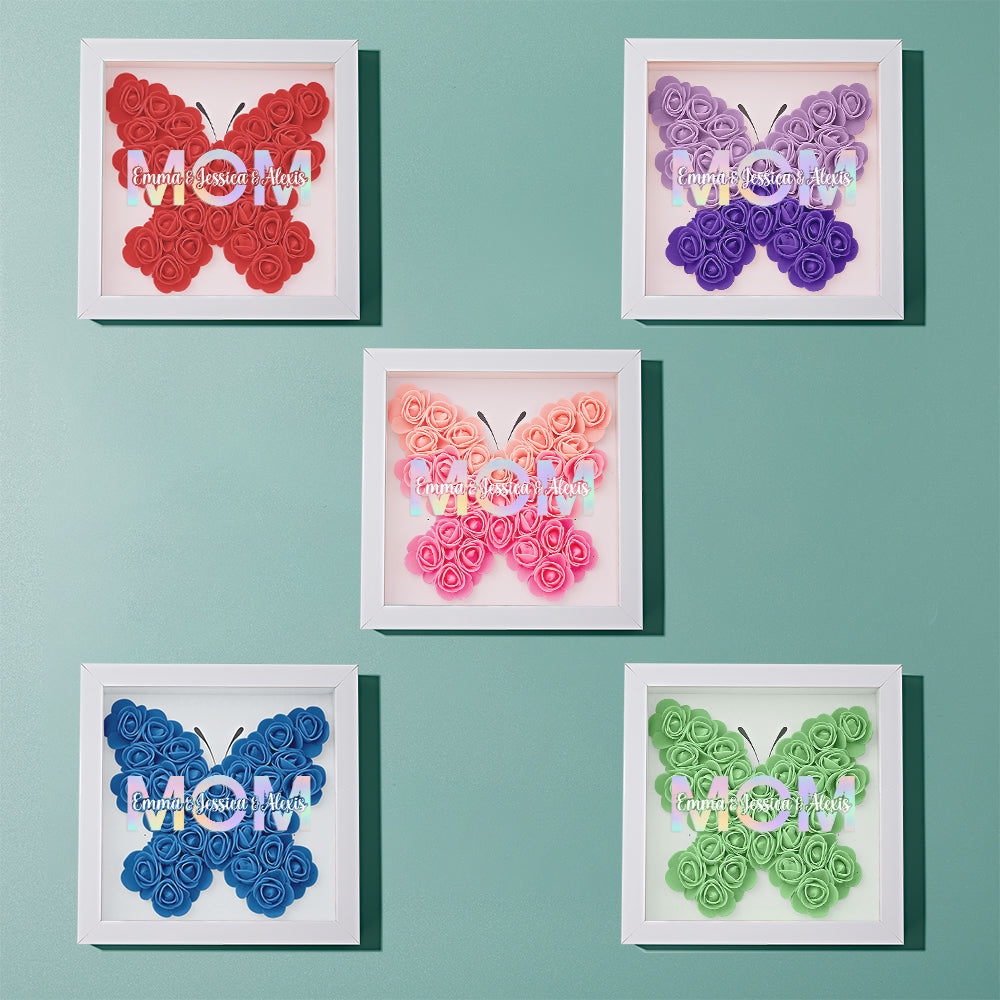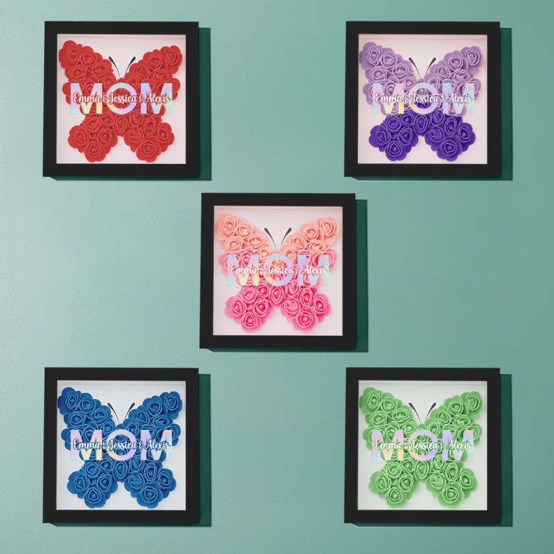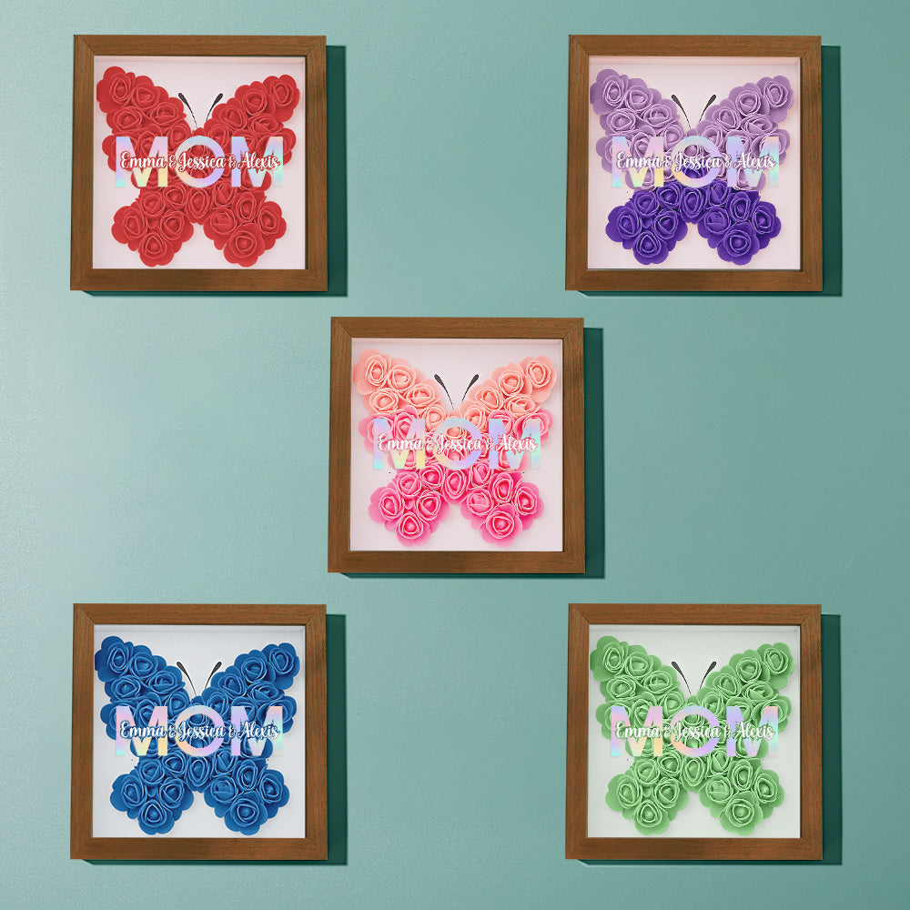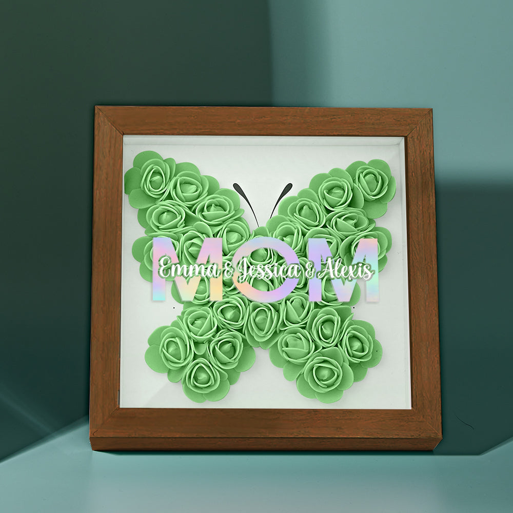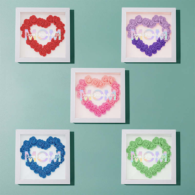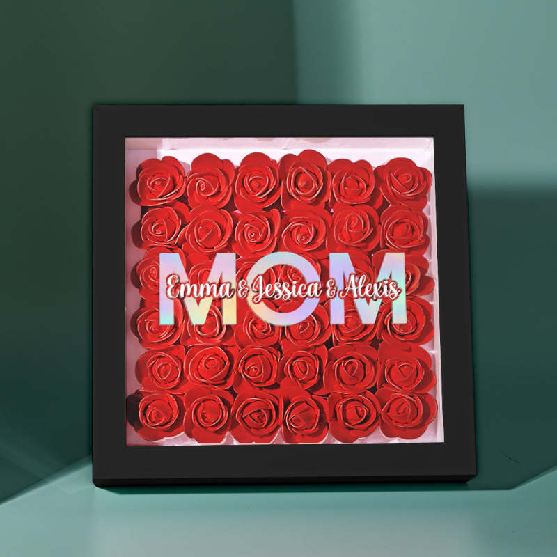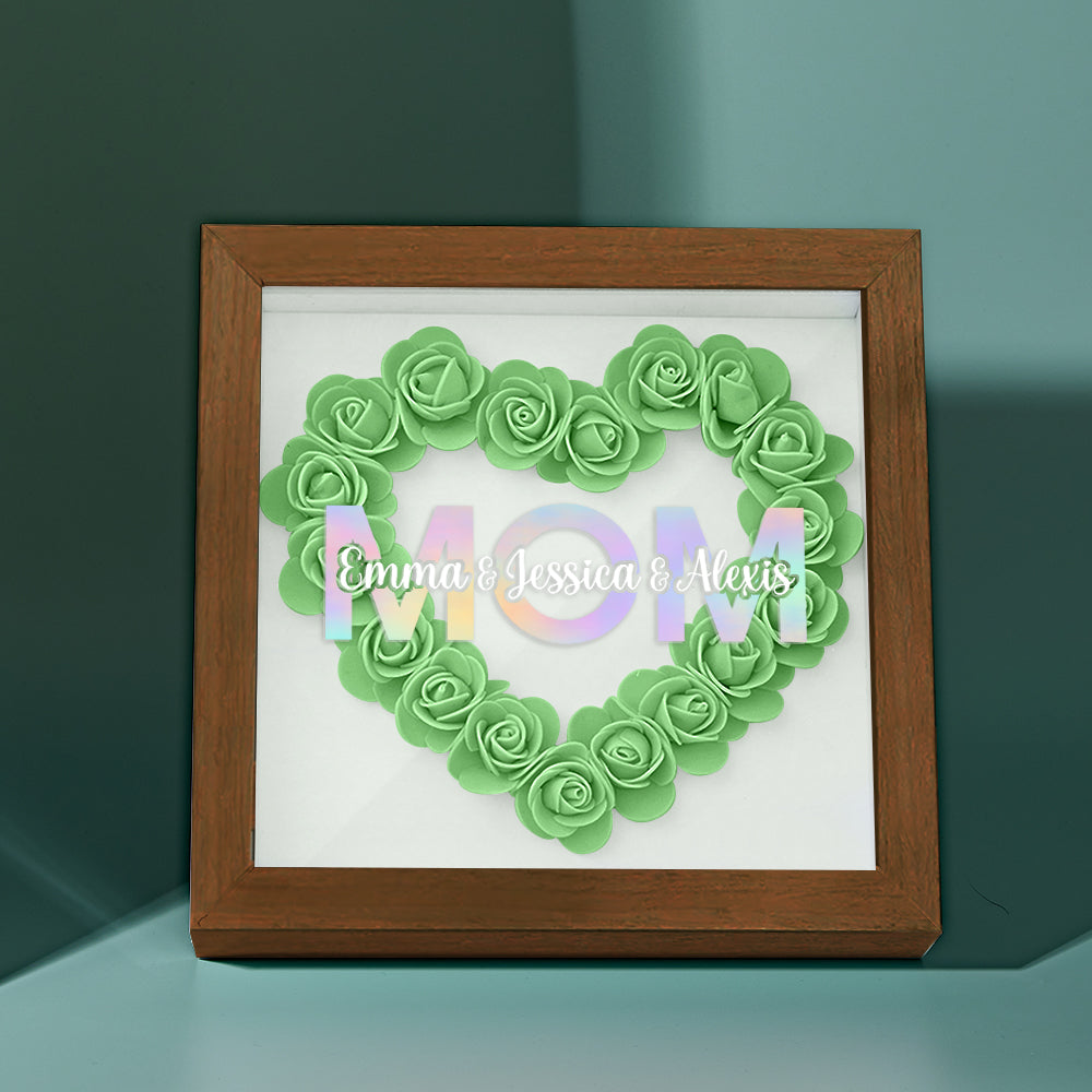 Cadre De Boîte D'ombre De Fleur Personnalisé Avec Nom, Cadeau De Fête Des Mères