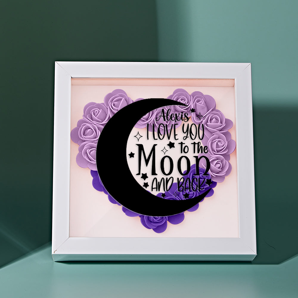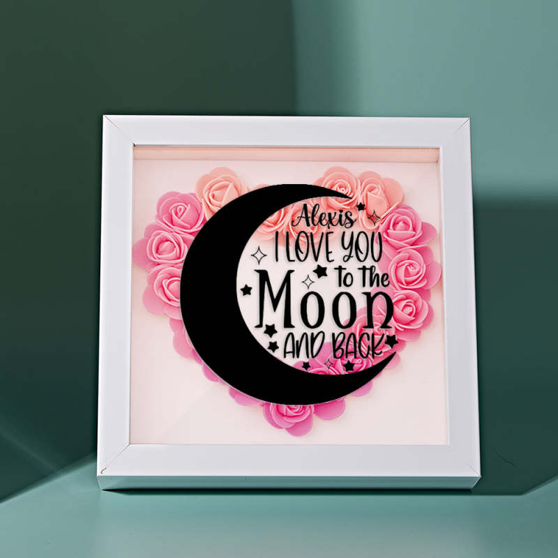 Boîte D’ombre À Fleurs Personnalisée Cadre De Boîte À Ombre À Fleurs De Lune Personnalisé Cadeau De Fête Des Mères