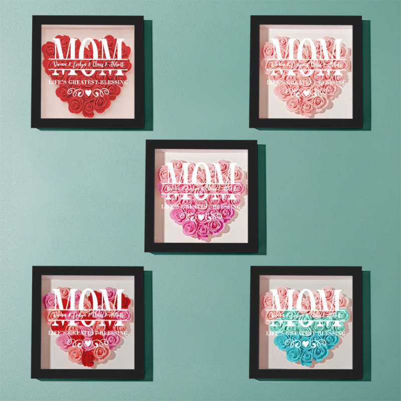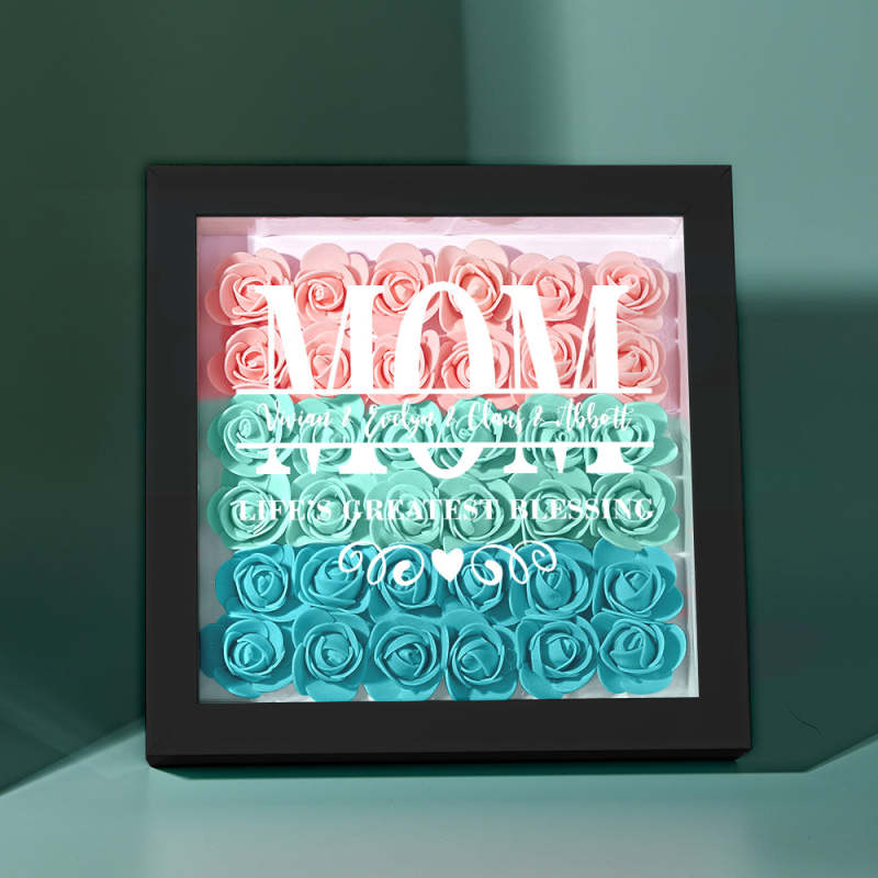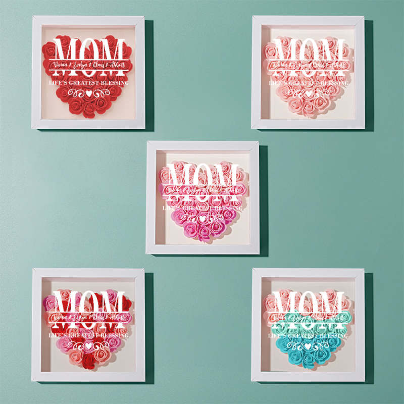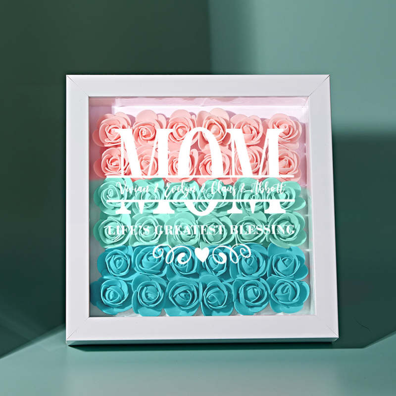 Boîte D'ombre De Fleurs Personnalisée, Nom Personnalisé, Cadre De Boîte D'ombre De Fleurs, Cadeau De Fête Des Mères