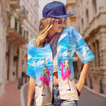 Chemise Hawaïenne Personnalisée Avec Visage Drôle De Flamant Rose, Anneau De Bain, Chemise Hawaïenne Pour Femmes