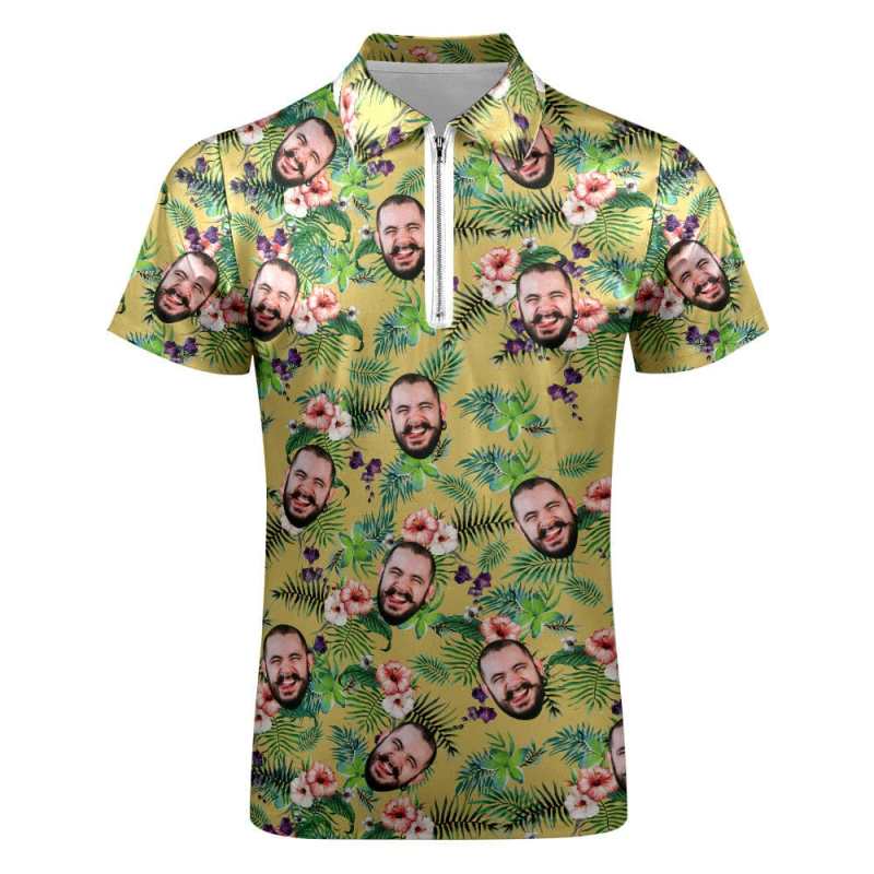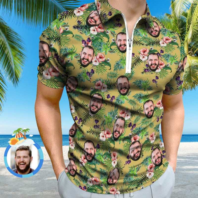 Polo Drôle Personnalisé Avec Fermeture Éclair, Visage Personnalisé, Style Hawaïen, Pour Hommes