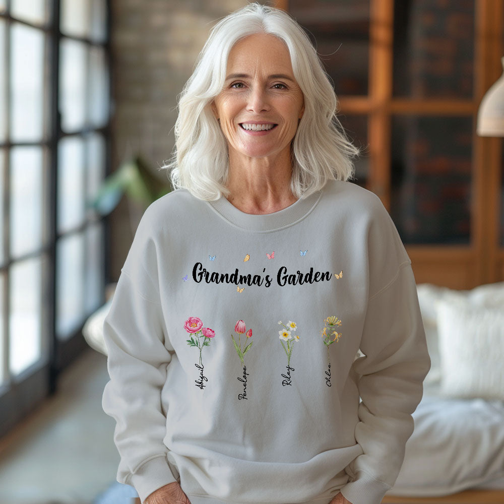 Sweatshirt Jardin De Grand-mère Personnalisé Fleur De Naissance Personnalisé Sweatshirt Fête Des Mères Cadeau Fête Des Mères