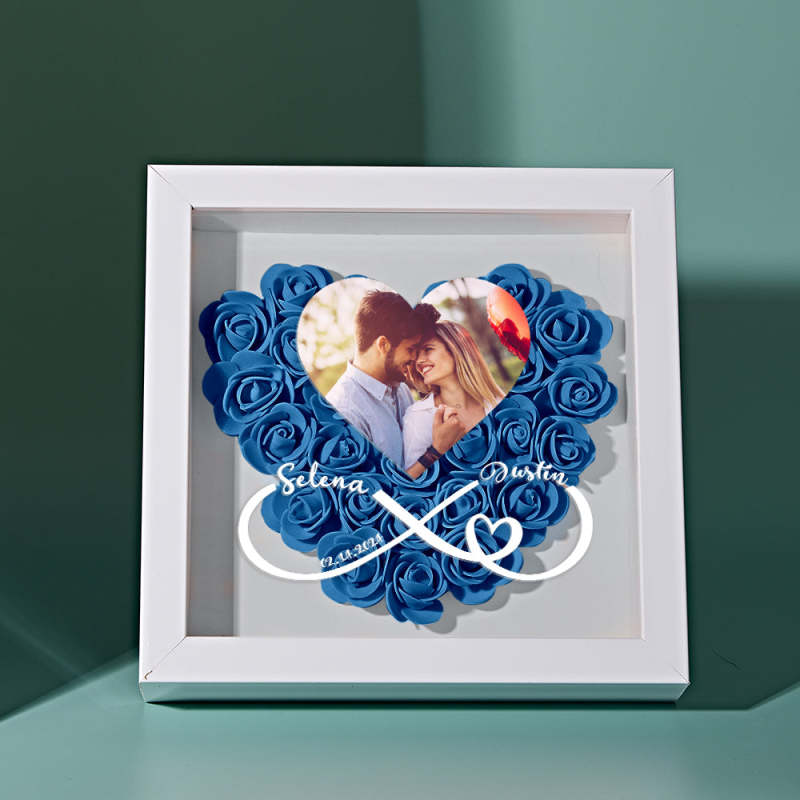 Boîte D'ombre De Fleur De Coeur Personnalisée Avec Cadeau Romantique Photo Pour Amoureux