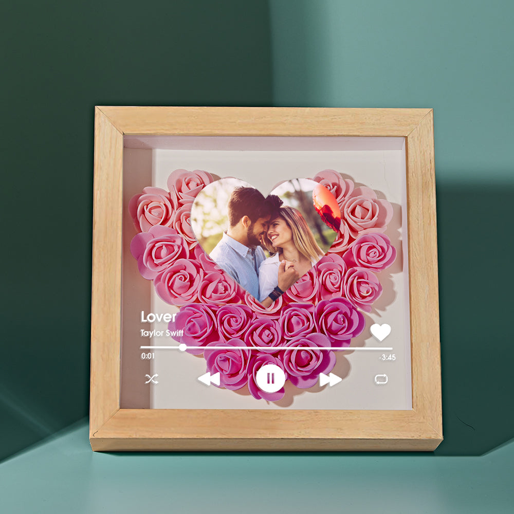 Boîte D'ombre De Fleur De Coeur Personnalisée Avec Des Cadeaux Romantiques De Photo Pour L'amant