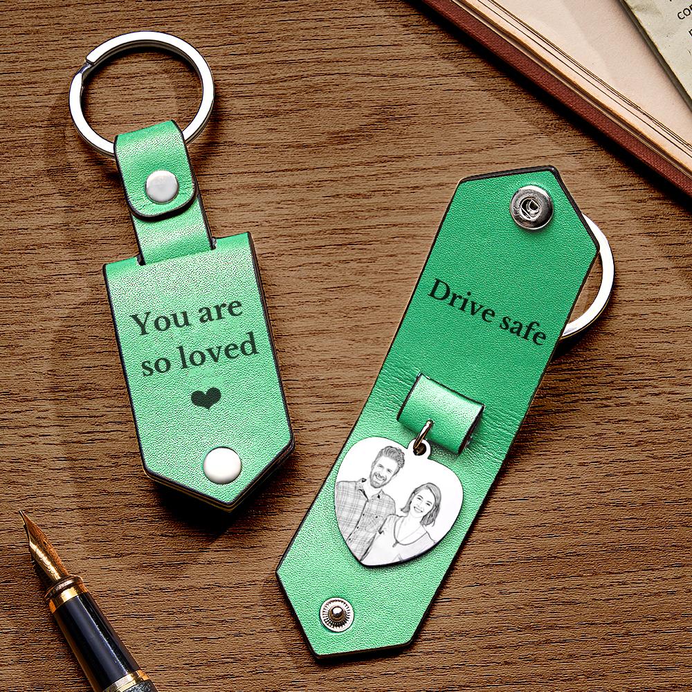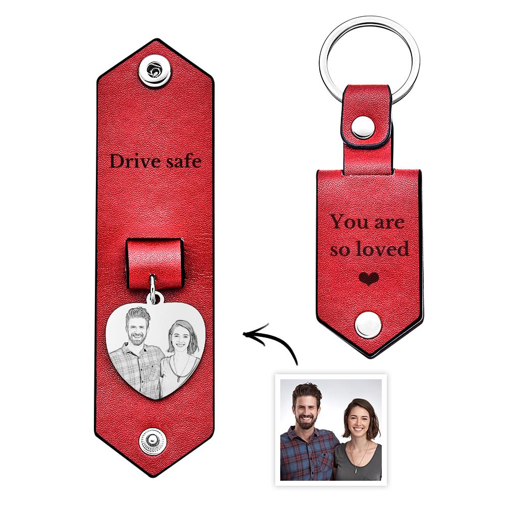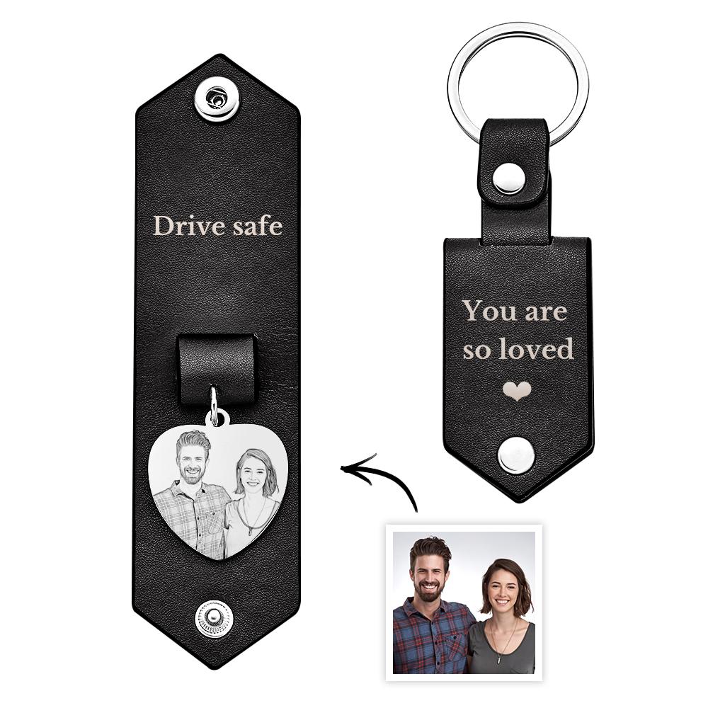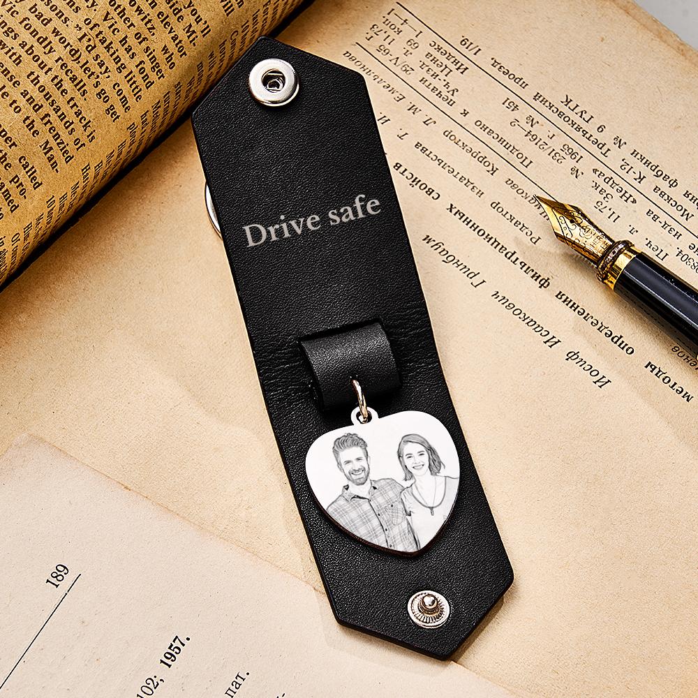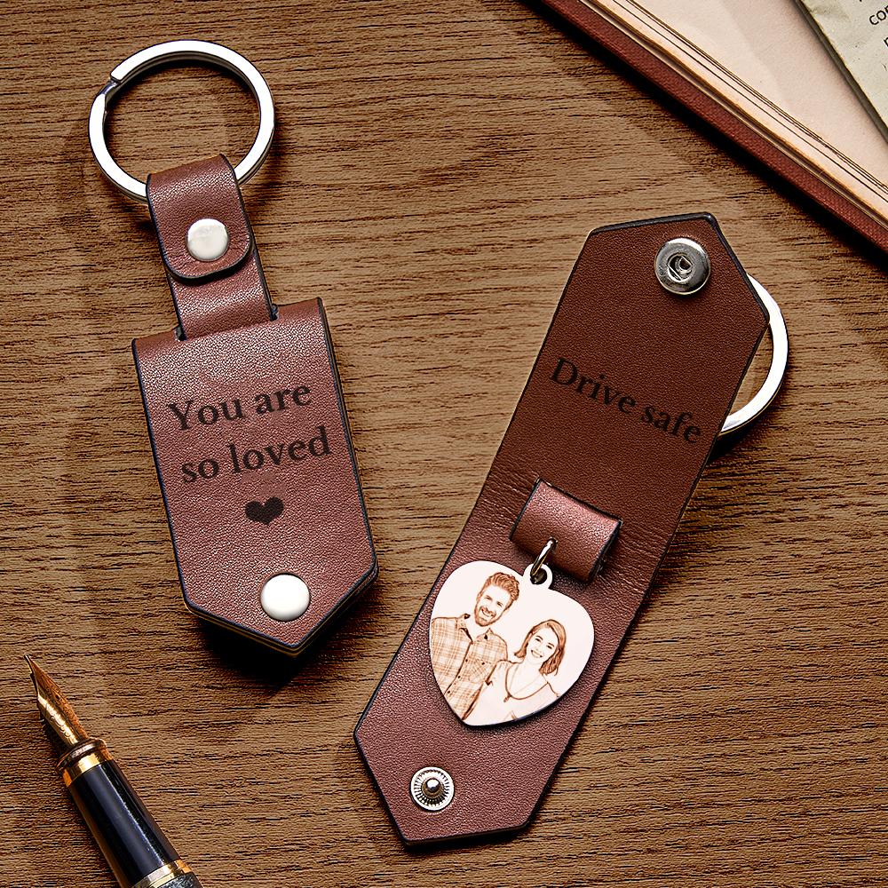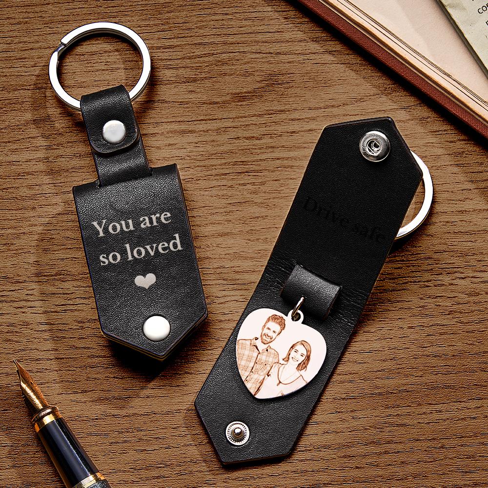 Porte-clés En Cuir Photo En Forme De Coeur Personnalisé Avec Cadeaux D'anniversaire De Texte Pour Hommes