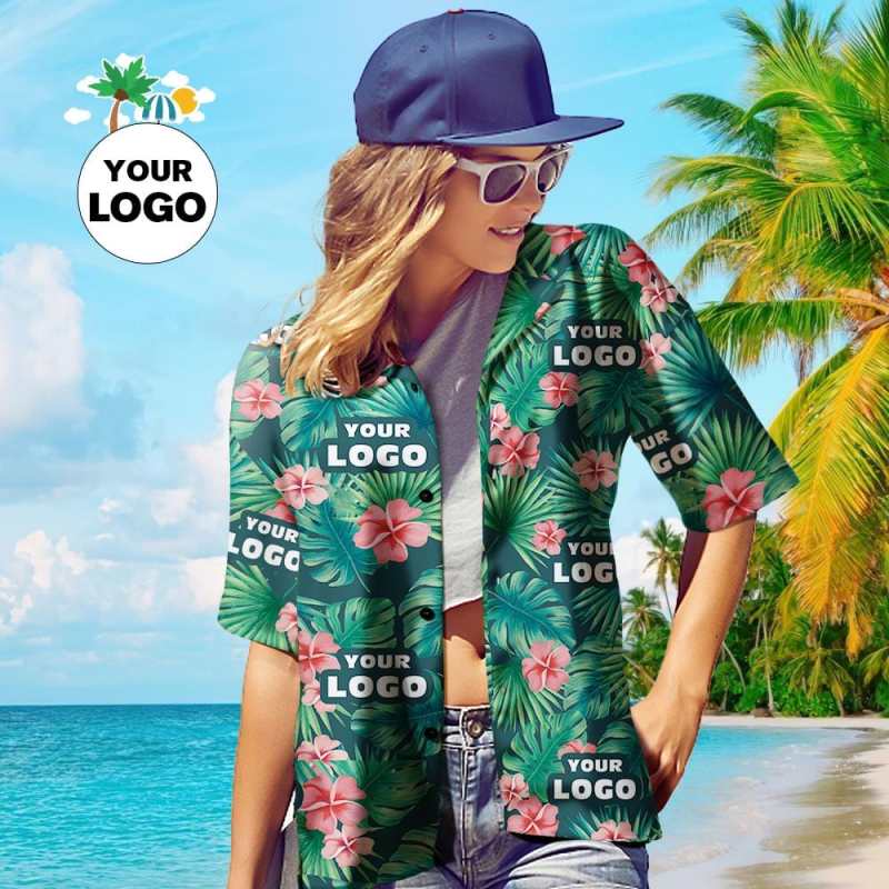 Imprimez votre logo sur une véritable chemise hawaïenne entièrement imprimée pour femme. Encouragez-vous ou montrez votre amour. Les meilleurs cadeaux personnalisés pour n'importe quel groupe ou équipe, ou pour vos amis ou votre famille !