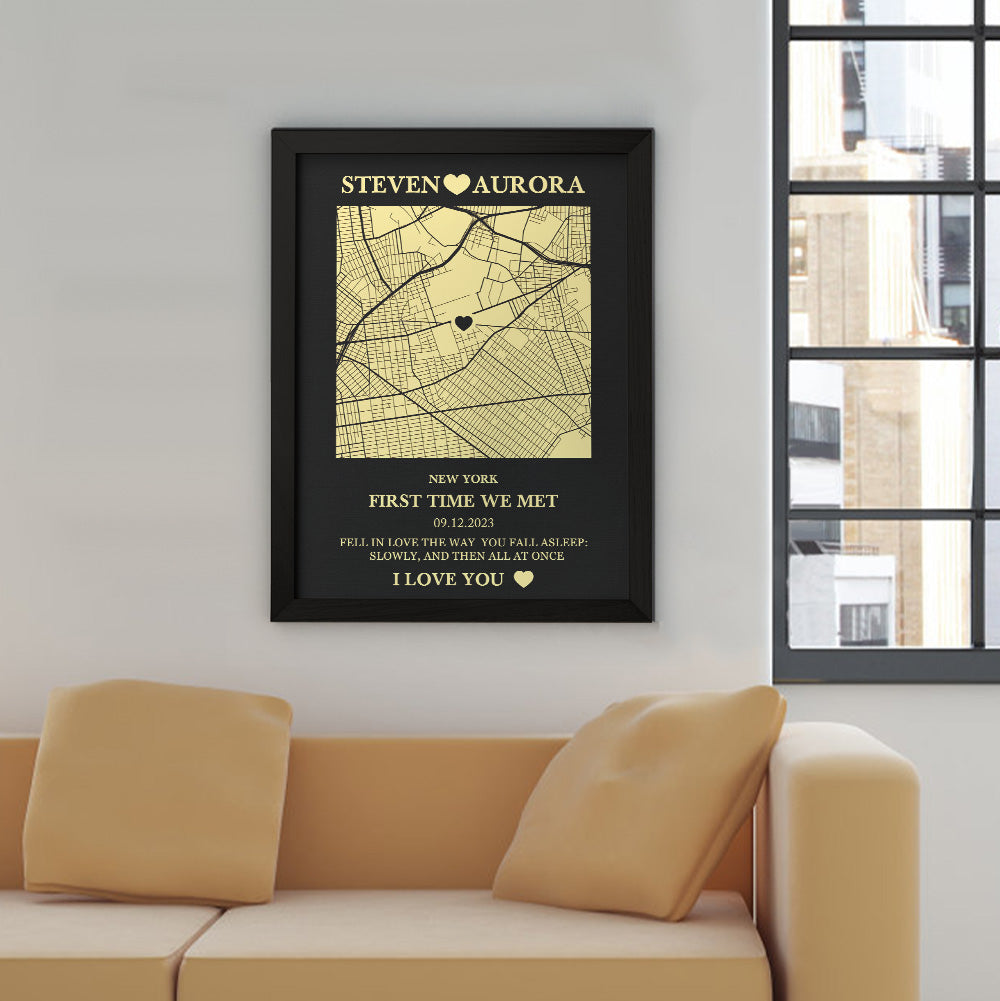 Fabriqué avec soin et dans le souci du détail, ce cadre en bois présente un motif de carte personnalisable, qui vous permet d'indiquer l'endroit exact où votre voyage ensemble a commencé. Qu'il s'agisse du lieu de votre première rencontre, de votre premier baiser ou de vos fiançailles, ce cadre commémore l'importance de ce moment dans votre vie.