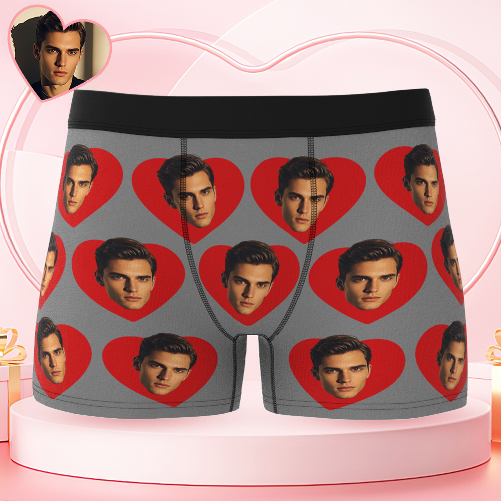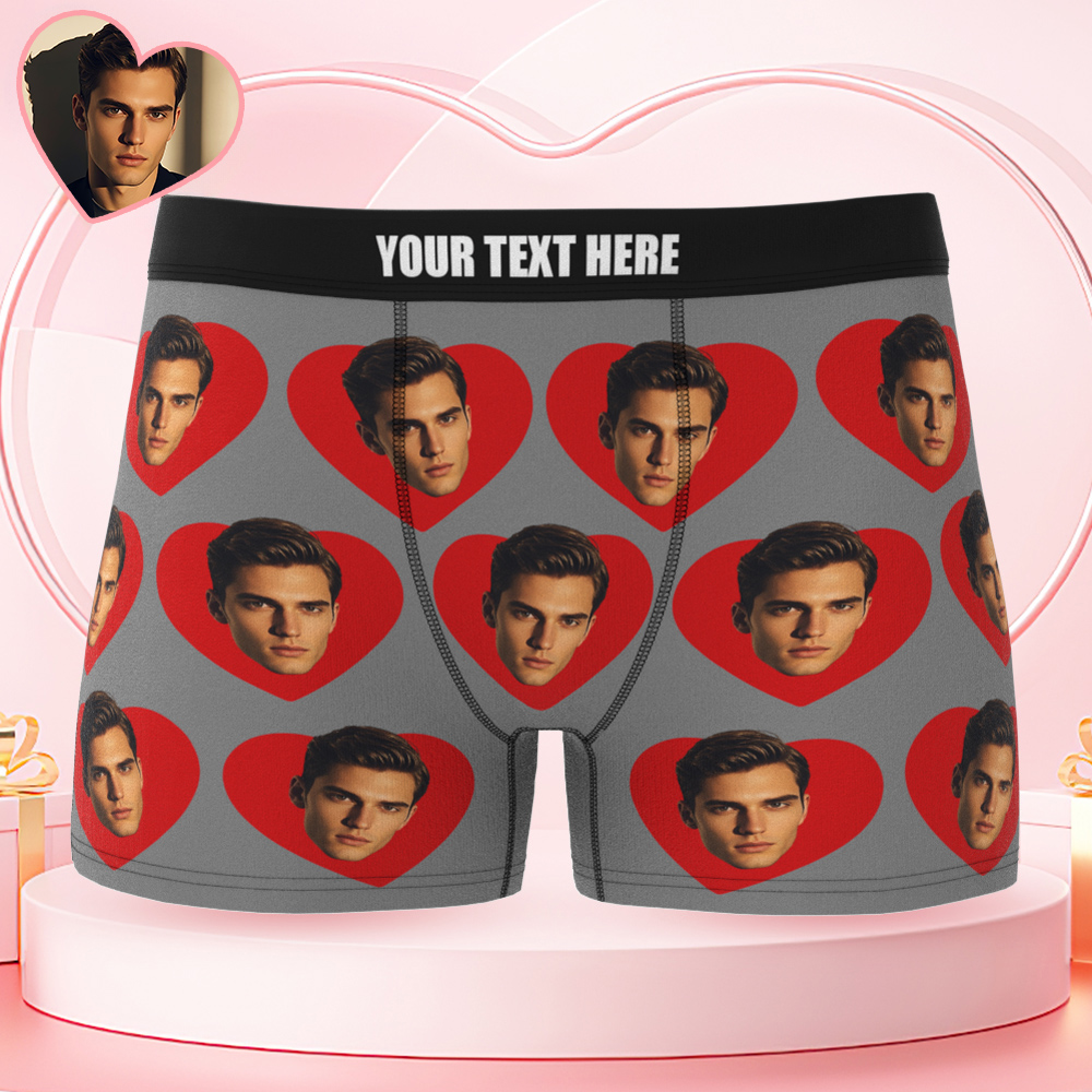 Boxer Personnalisé Pour Homme Avec Photo Personnalisée Et Cœur Multicolore, Idéal Pour La Saint-valentin.
