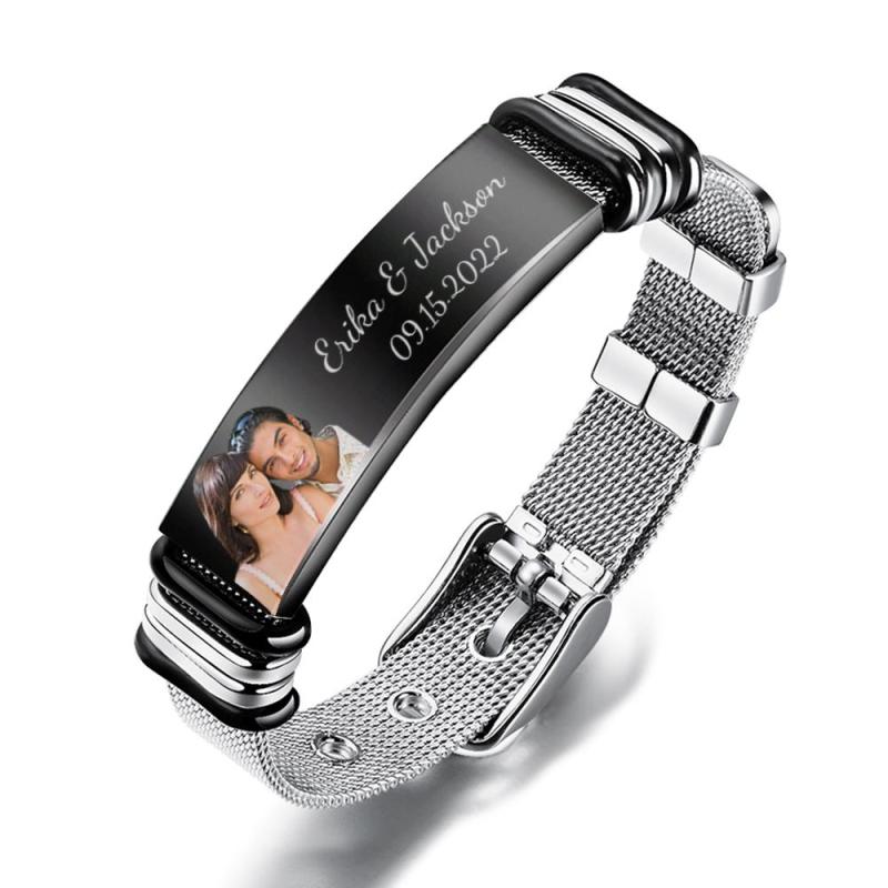 Ce bracelet unique est le meilleur cadeau parfait pour lui. Fabriqué en acier inoxydable, représente votre amour pour lui pourrait durer éternellement. Personnalisez votre photo et vos mots, et choisissez votre chanson, photo et mots préférés, tout peut être imprimé sur le bracelet. C'est un cadeau parfait pour diverses occasions comme la fête des pères, Noël, Thanksgiving et d'autres jours fériés.