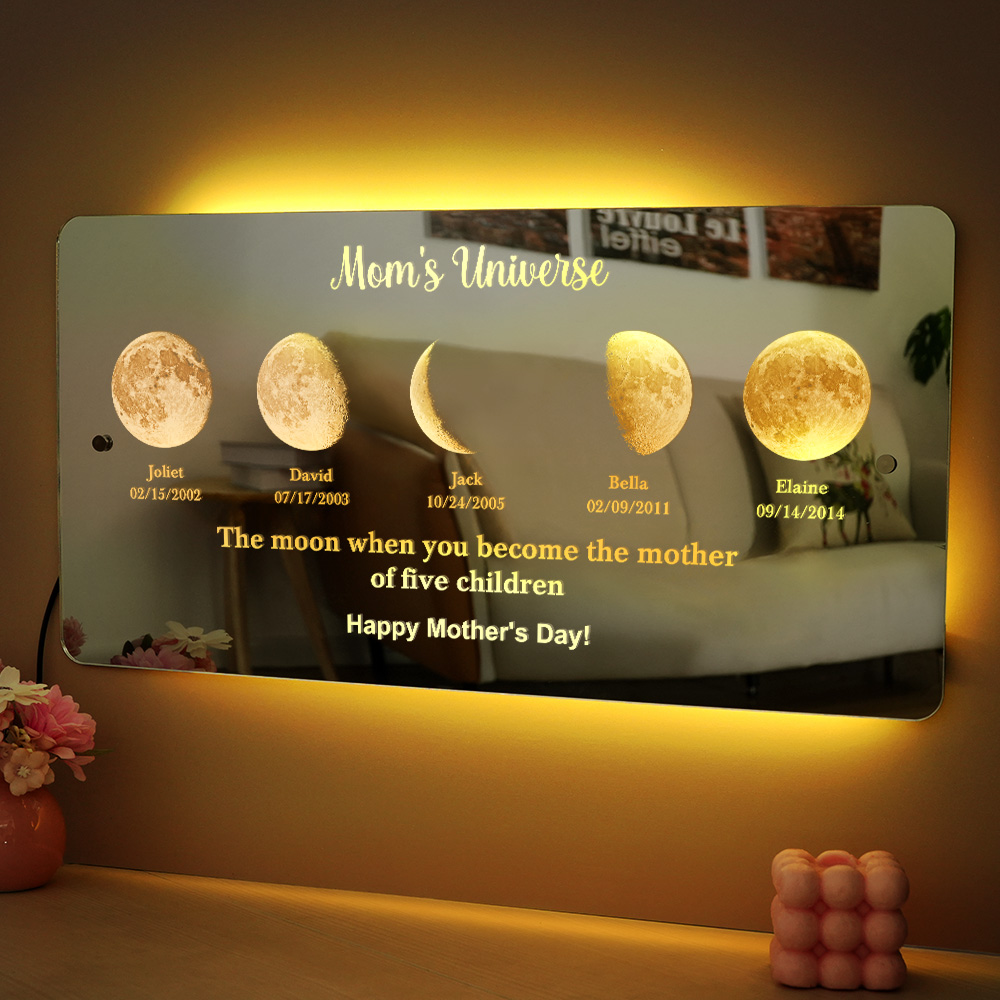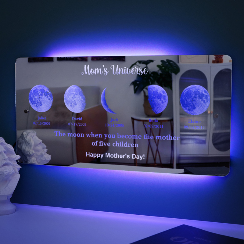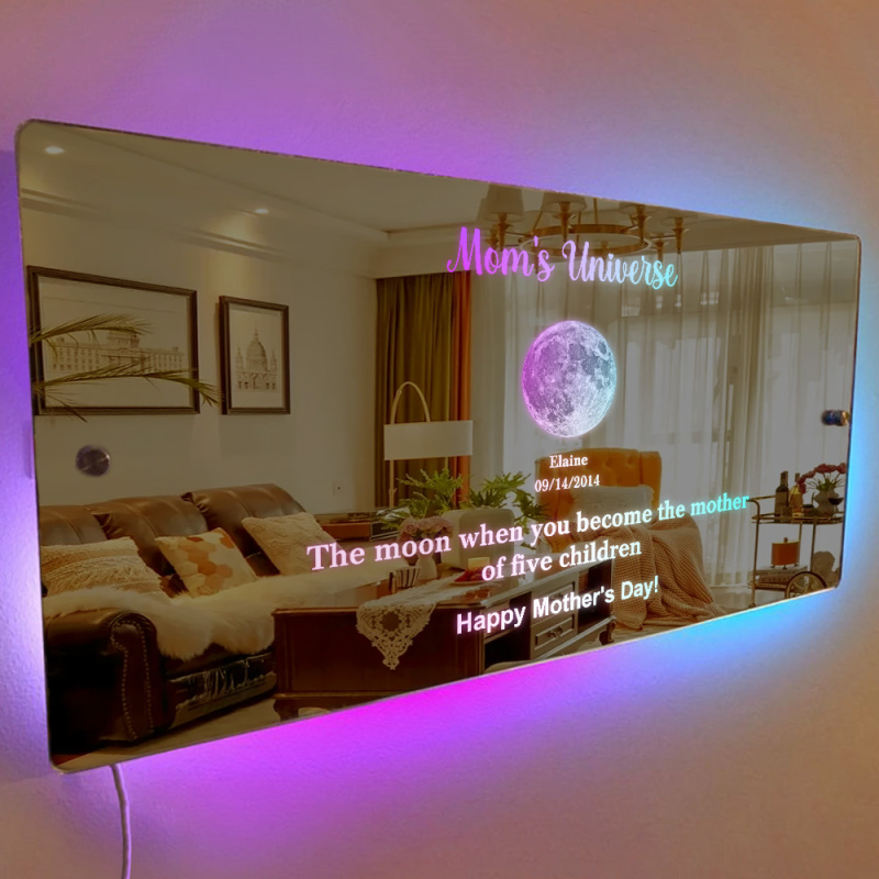 Custom Mom's Universe Led Mirror Light Frame with Text and Date Mother's Day Gifts