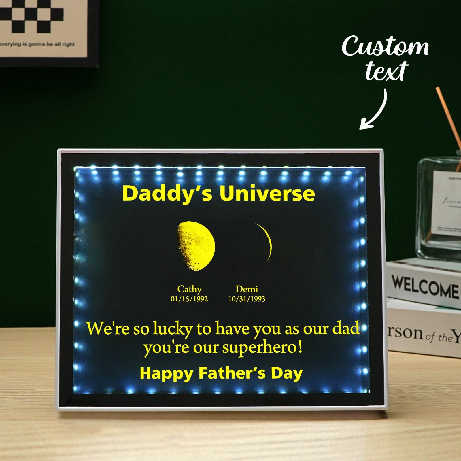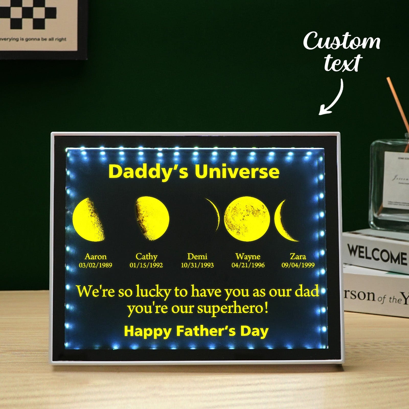 Miroir De Phase De Lune Personnalisé, Veilleuse, Cadre Familial, Lampe Lunaire Personnalisée, Cadeau D'anniversaire Unique
