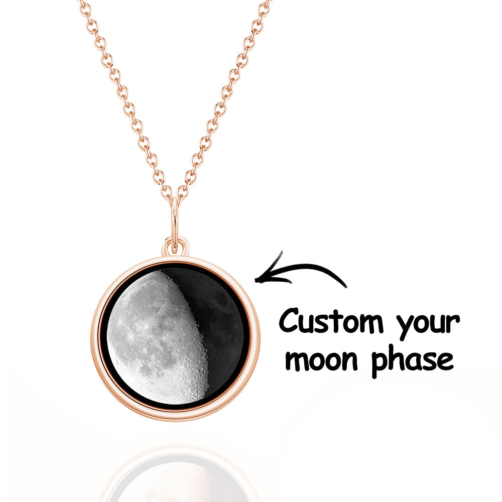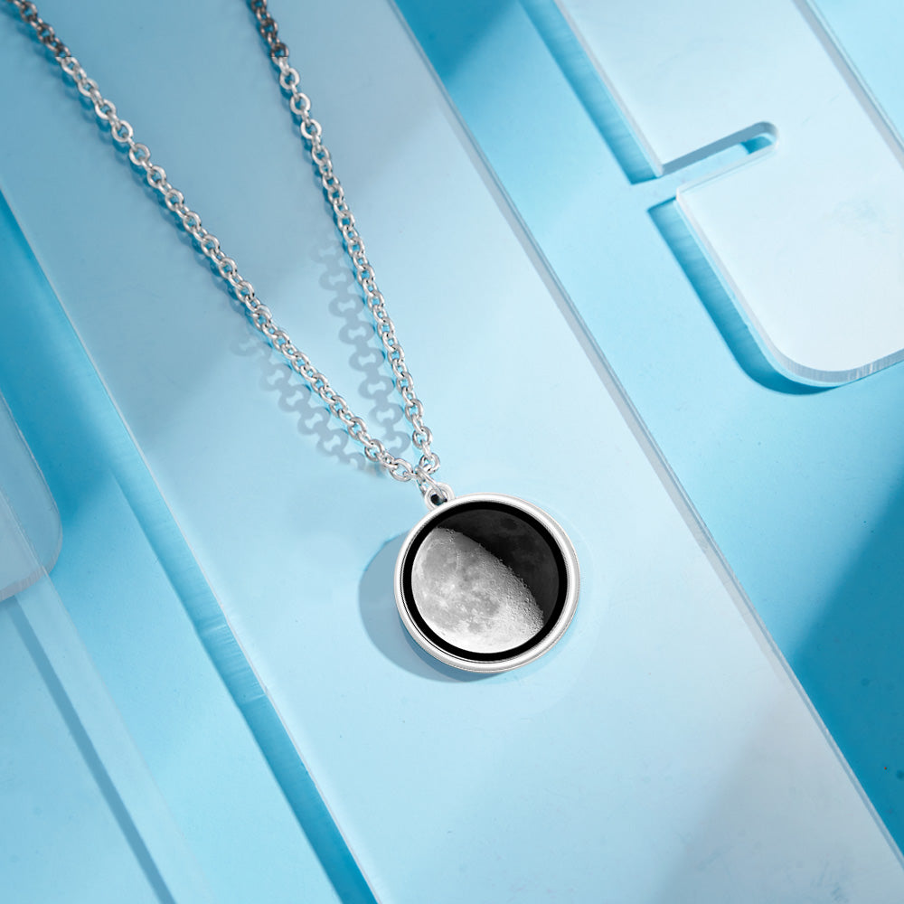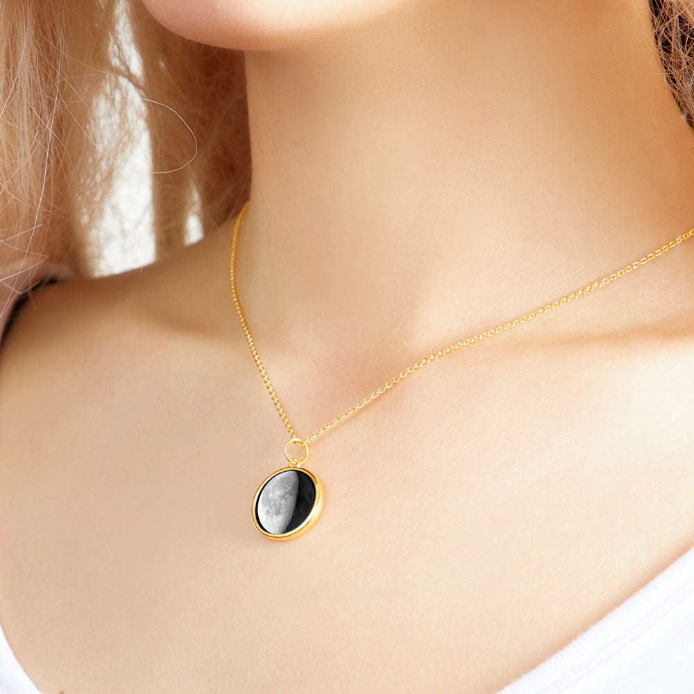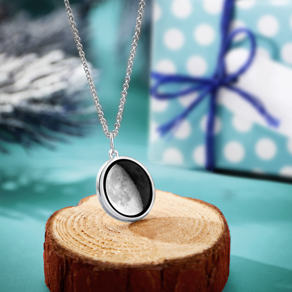 Ce collier de lune personnalisé présente la phase de la lune lors de votre journée spéciale ! Choisissez n'importe quelle date et je chercherai la phase de lune pour cette nuit, la transformant en un pendentif portable. La date peut être un anniversaire, un anniversaire ou toute autre date significative !