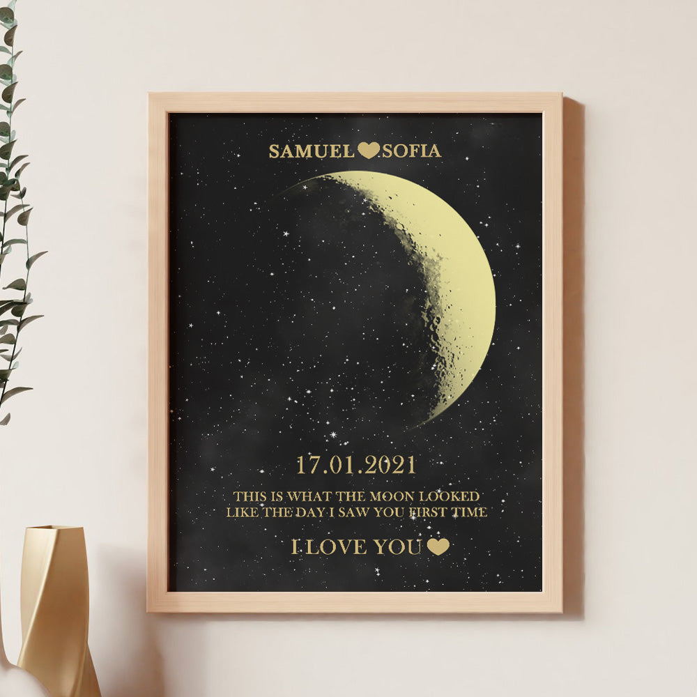 Cadeaux Personnalisés De Cadre D'impression D'or De Phase De Lune Pour L'anniversaire Et L'anniversaire
