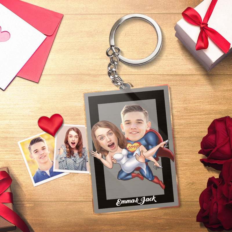 Portes-clés Photo Personnalisé Avec Prénom Porte-clés Acrylique Superman Cadeaux de Saint Valentin