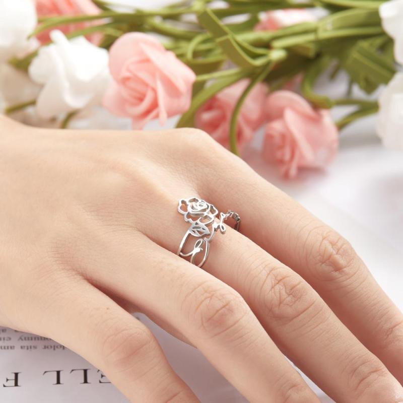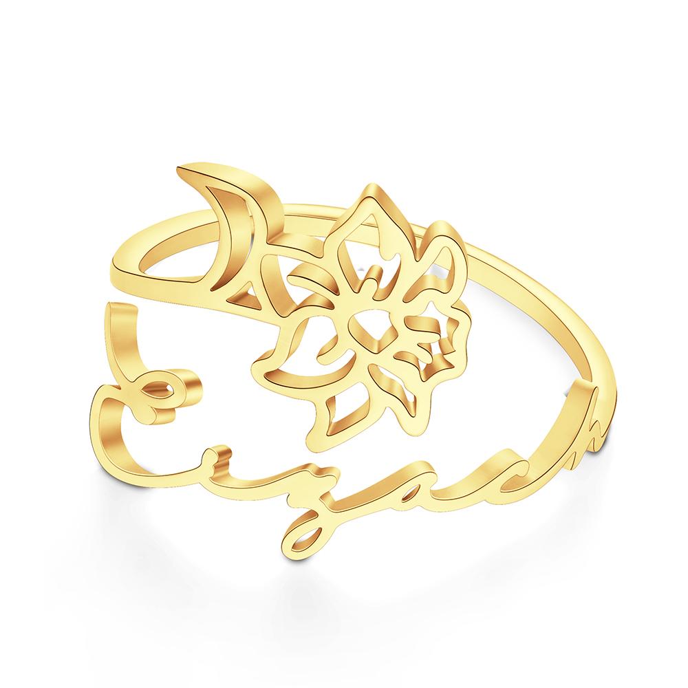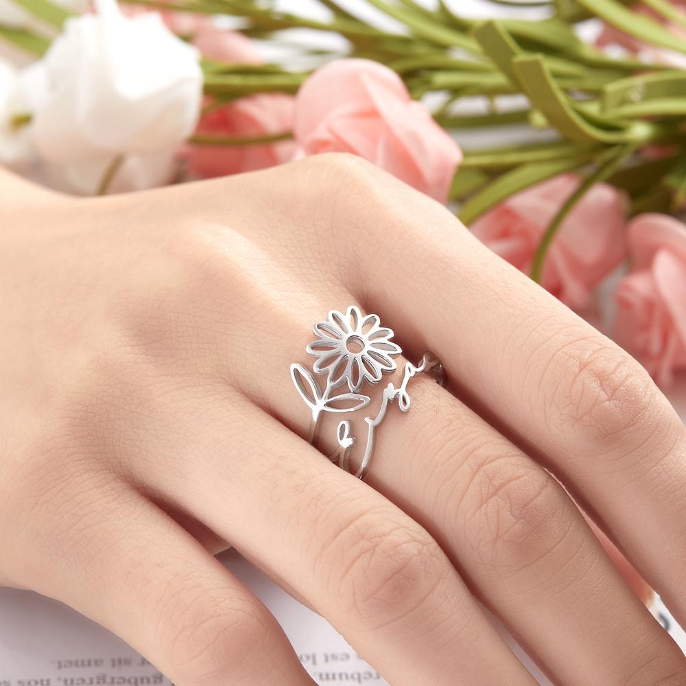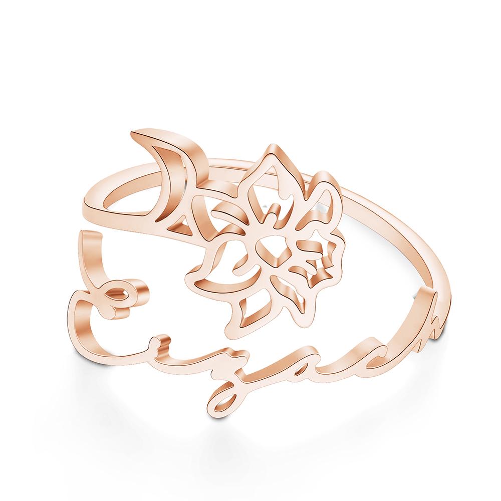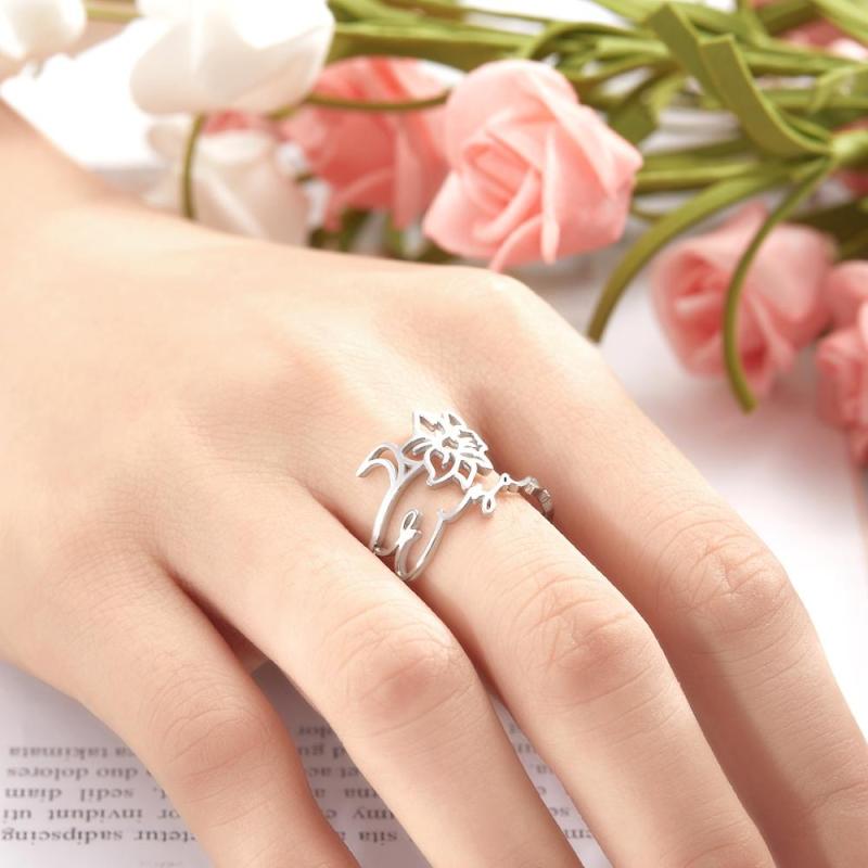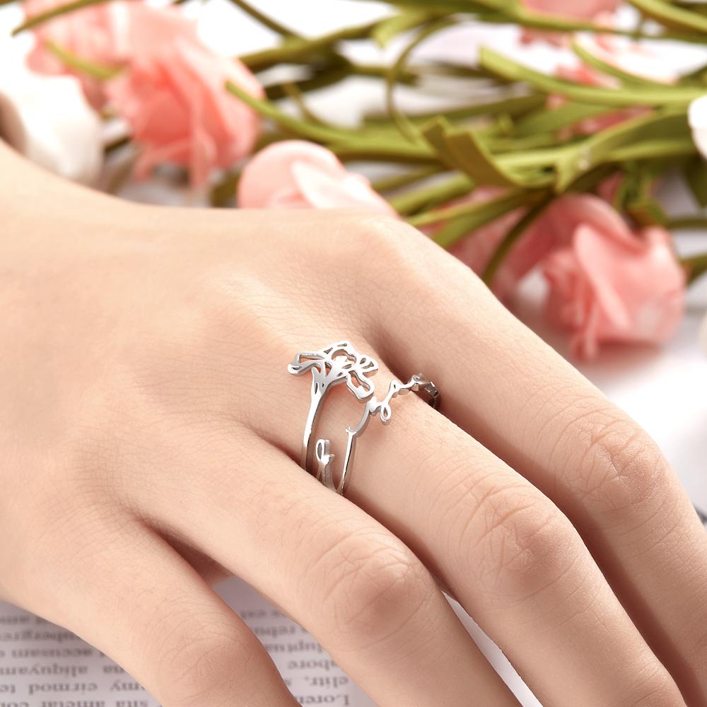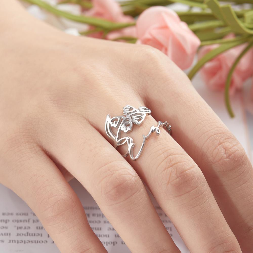 Bague Florale Avec Nom Personnalisé, Mois De Naissance, Bijoux Floraux Délicats, Cadeau D'anniversaire, Lys De Mai