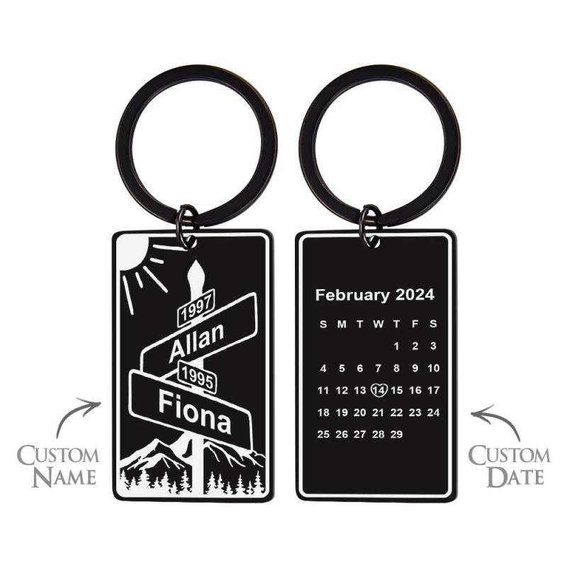 Porte-clés Personnalisé Avec Nom, Date, Panneau De Rue, Intersection De L'amour, Cadeau D'anniversaire Pour Les Couples