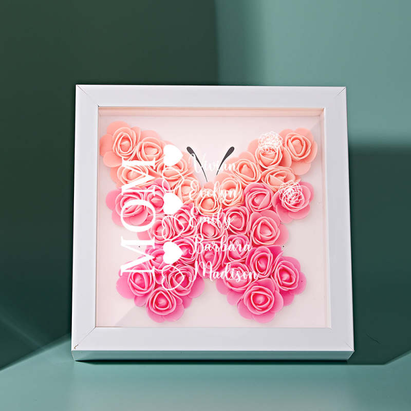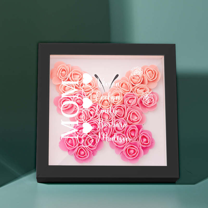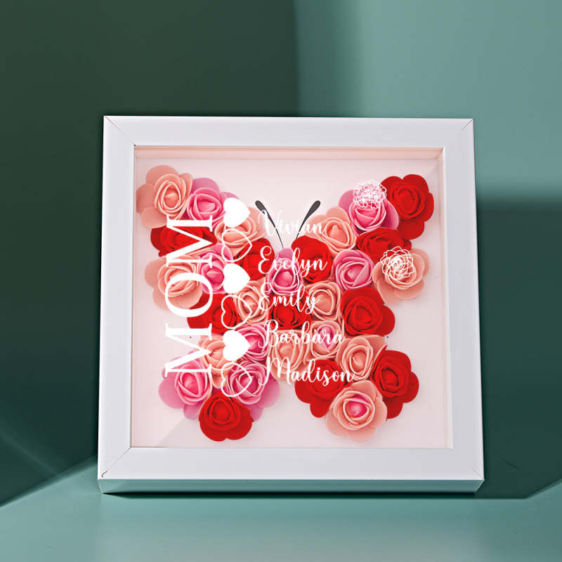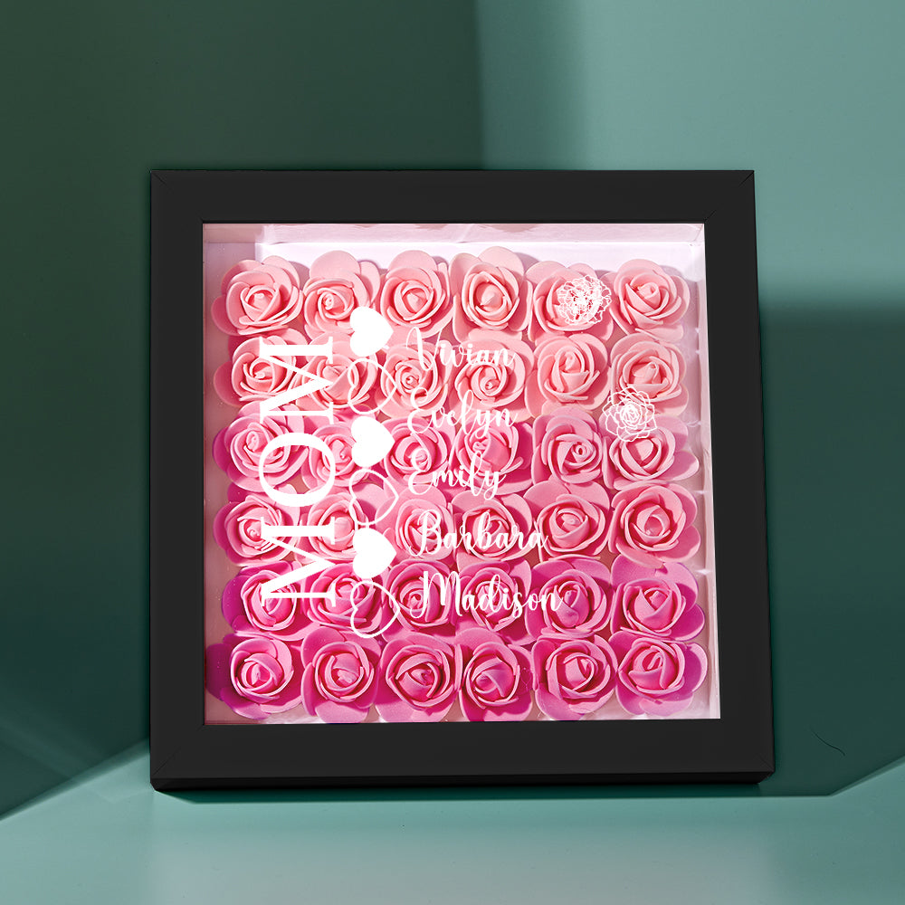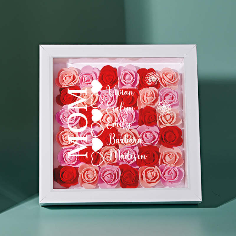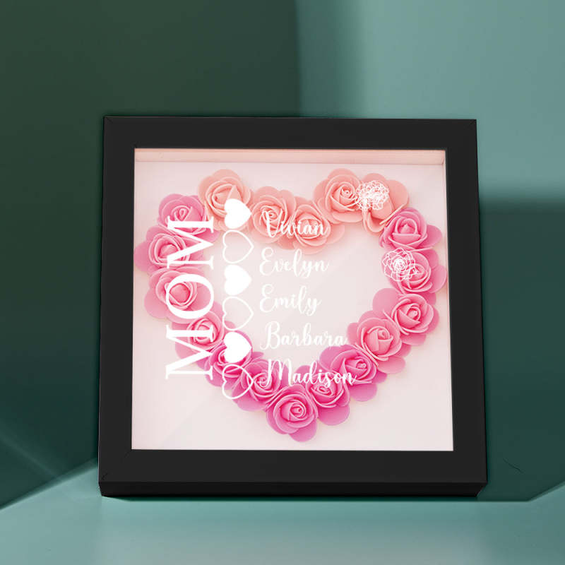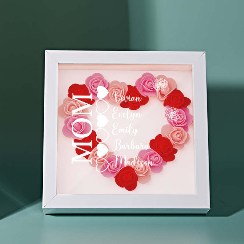 Boîte D'ombre À Fleurs Avec Nom Personnalisé, Cadre De Fleur En Forme De Cœur, Cadeau De Fête Des Mères