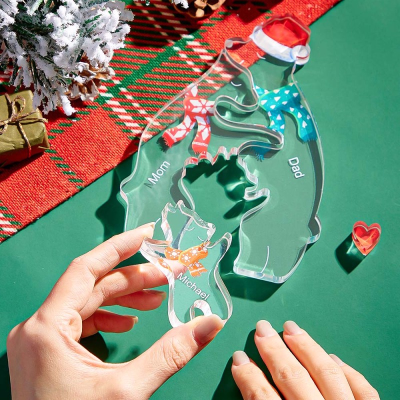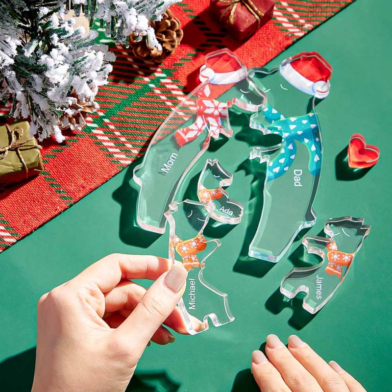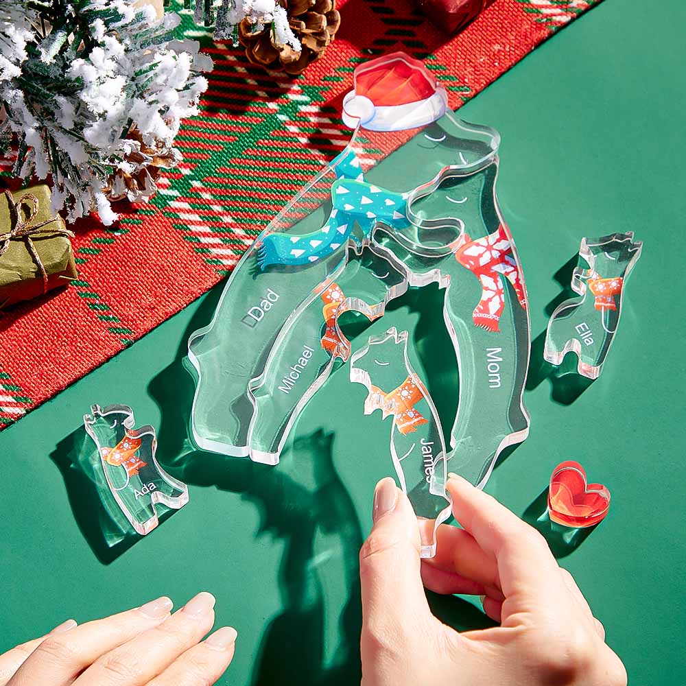 Ours À Câliner De Noël Avec Noms Personnalisés, Puzzle Familial En Acrylique, Décoration De Maison, Cadeaux De Noël