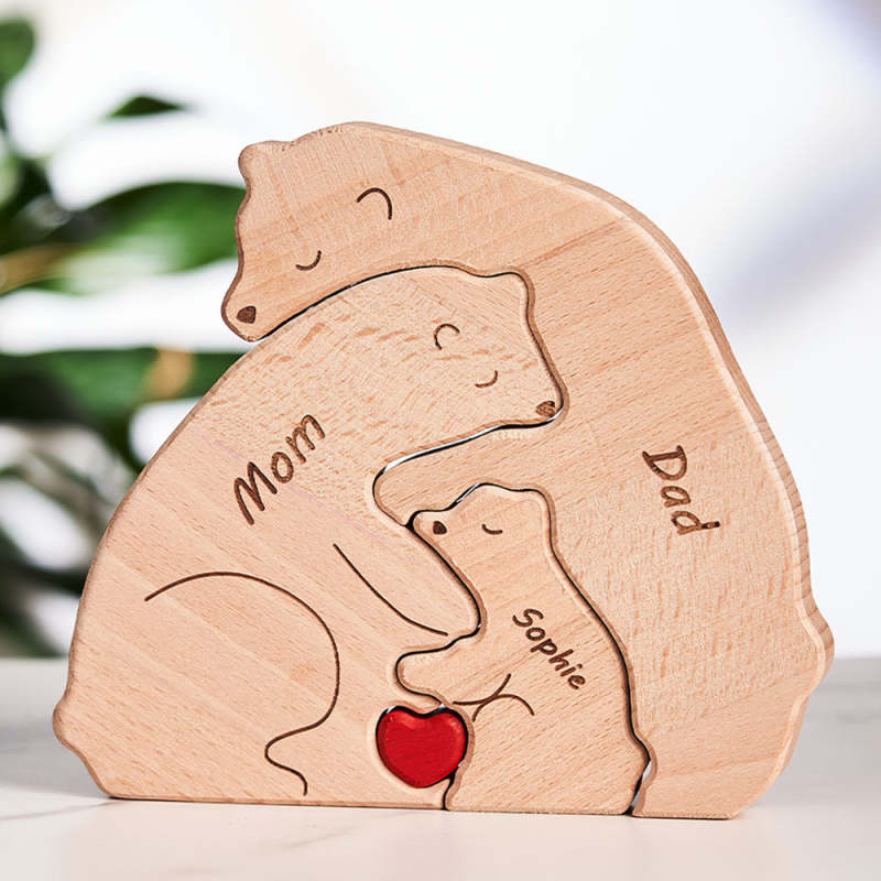 Noms Personnalisés Ours En Bois Bloc Familial Puzzle Cadeaux De Décoration Pour La Maison