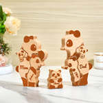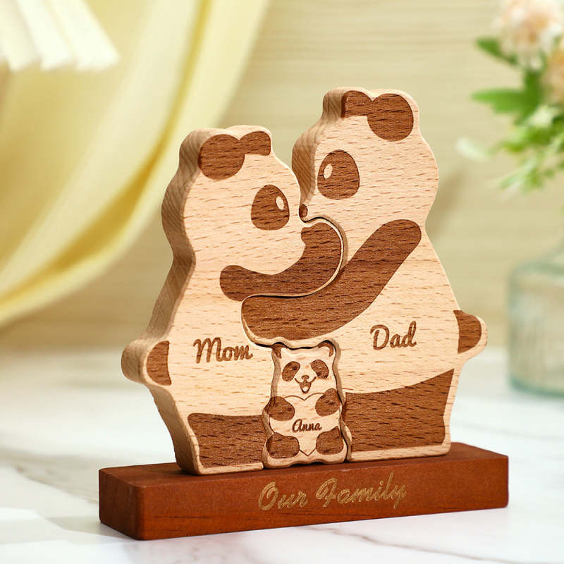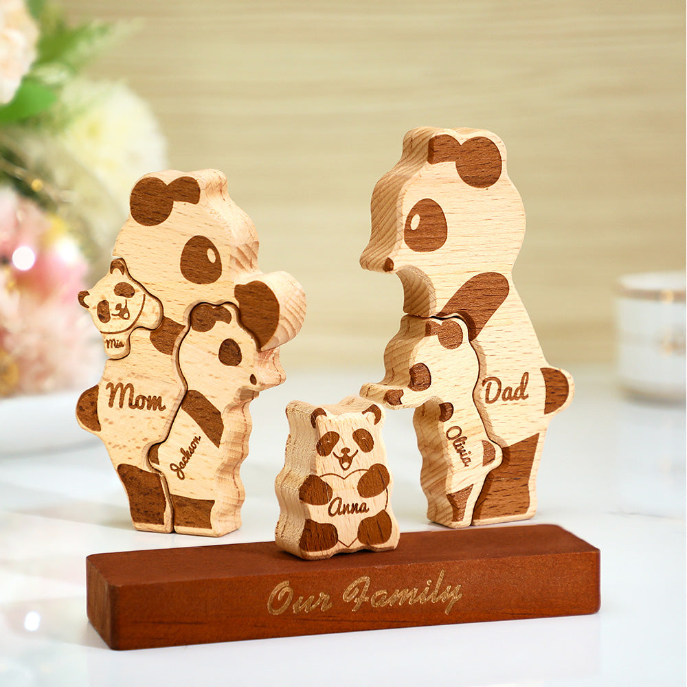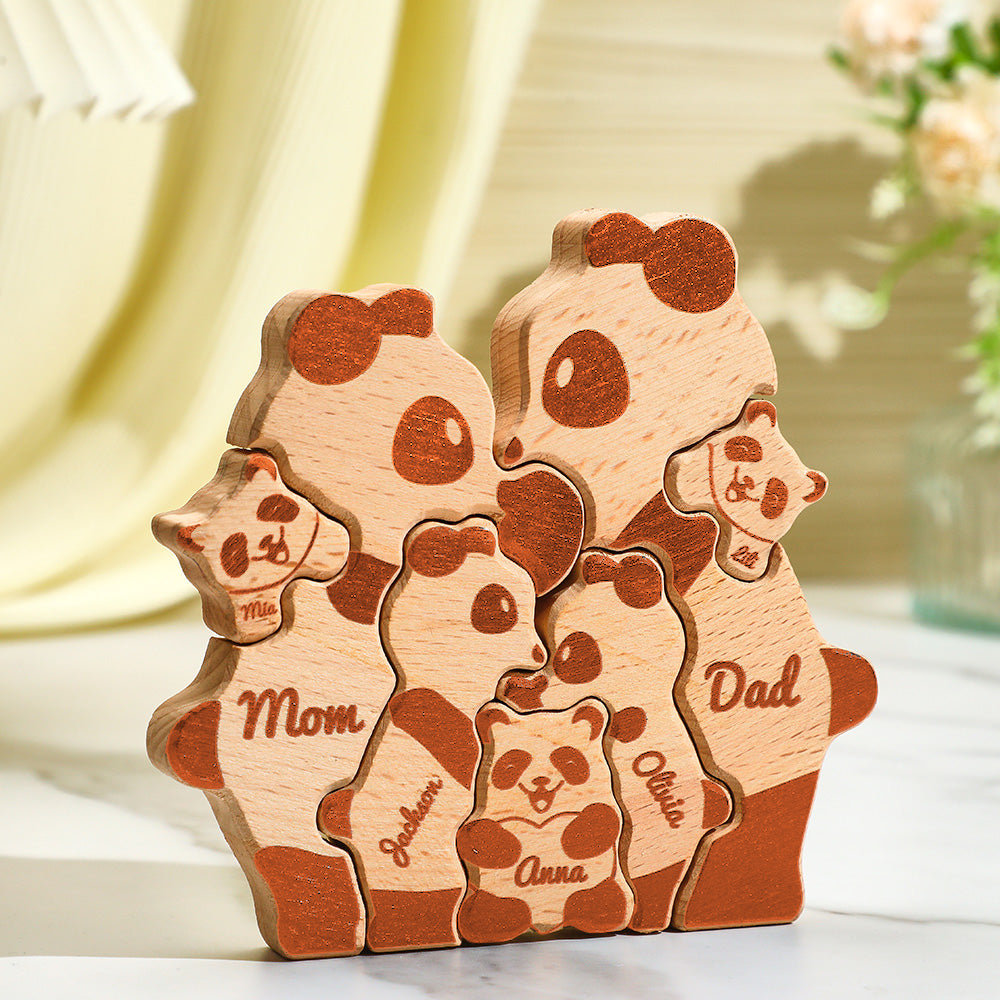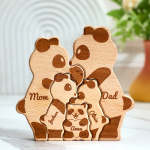 Puzzle En Bloc Familial De Pandas En Bois Avec Noms Personnalisés, Cadeaux De Décoration Pour La Maison