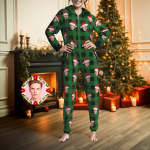Pyjama Photo Personnalisé, Vêtements De Nuit Une Pièce, Combinaison À Carreaux Rouge Et Noir, Vêtements De Maison, Cadeau De Noël