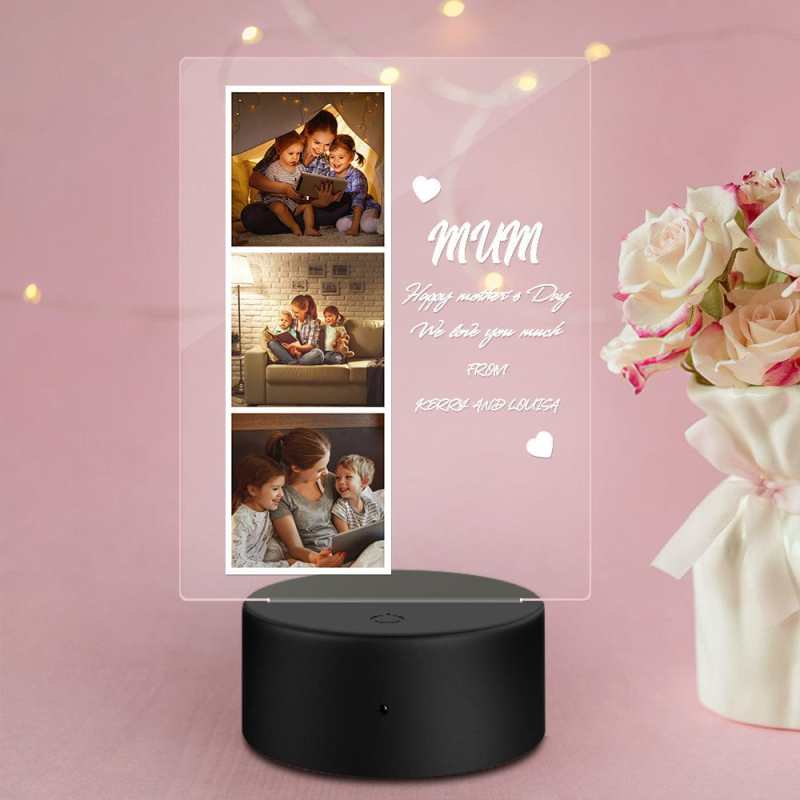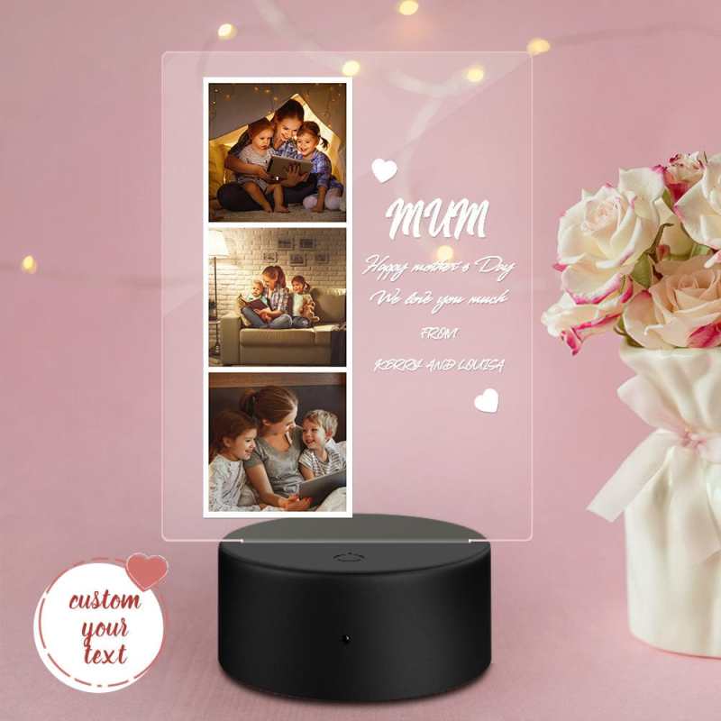 Photo personnalisée et nom veilleuse acrylique cadeau de fête des mères pour maman