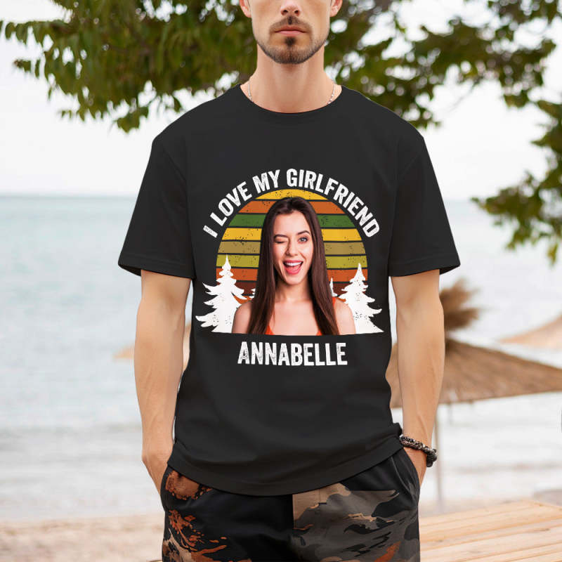 Photo Et Texte Personnalisés T-shirt Rétro Coucher De Soleil Tee-shirt Vintage Personnalisé
