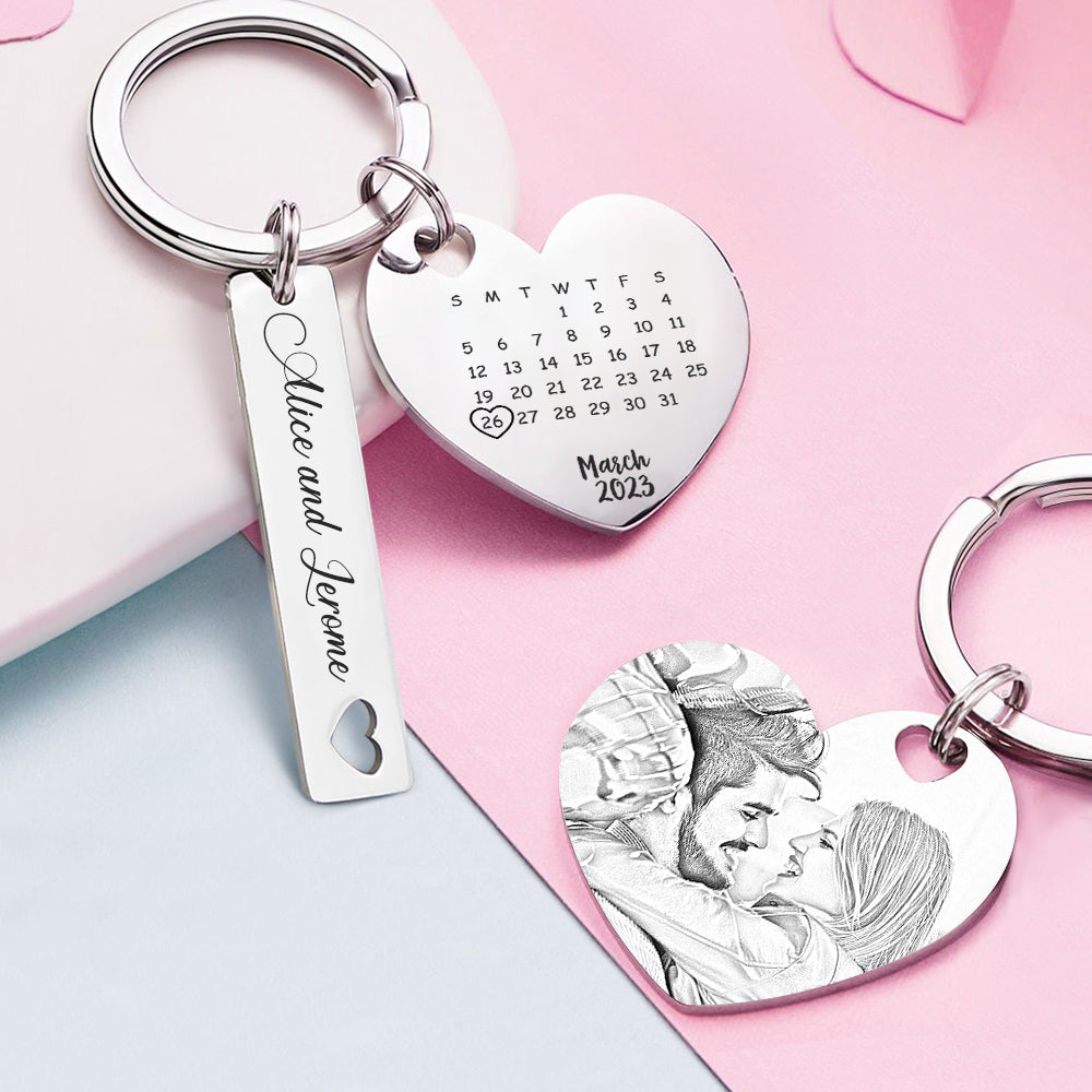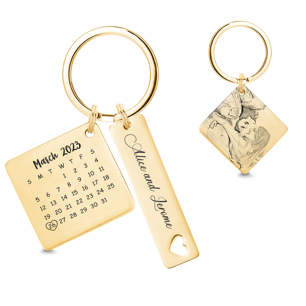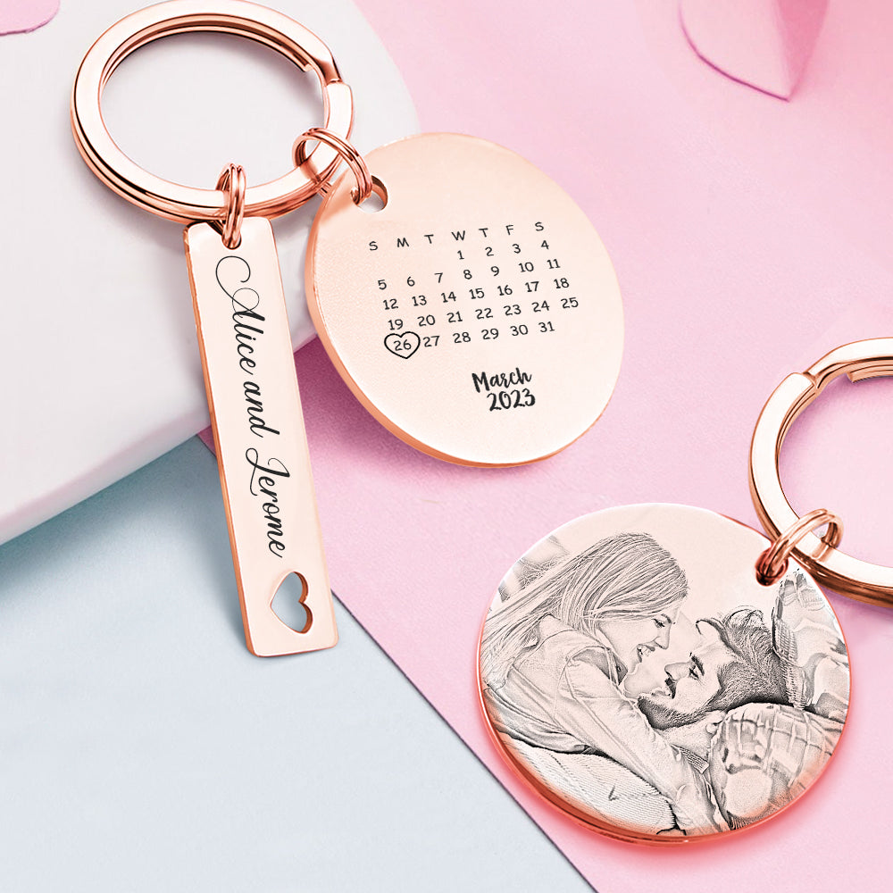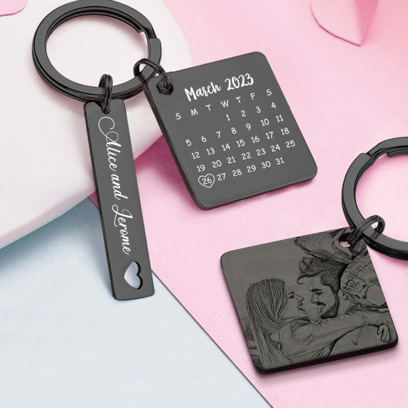 Porte-clés De Calendrier Photo Personnalisé Personnalisé Enregistrer Le Cadeau De Porte-clés De Date Pour Les Amoureux