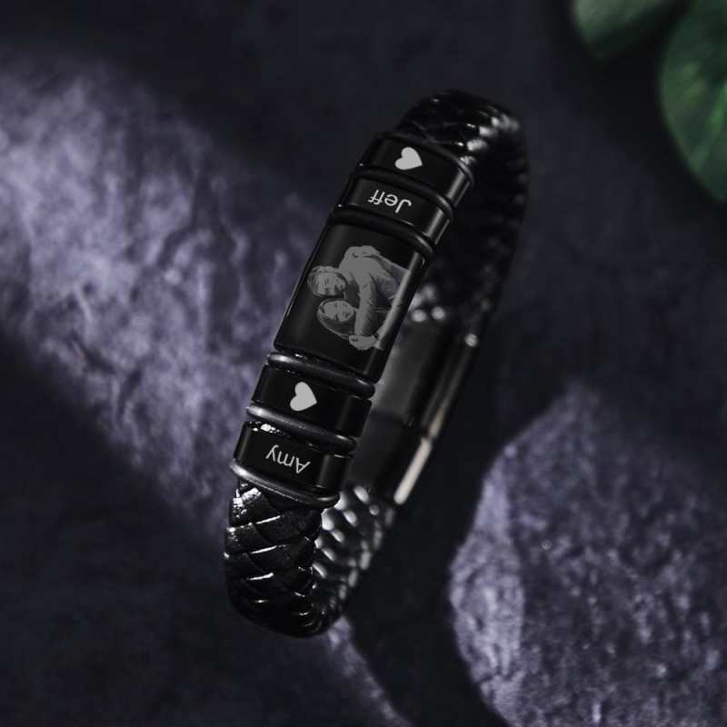 Bracelet personnalisé avec photo gravée Bracelet en cuir personnalisé pour homme Cadeau d'anniversaire