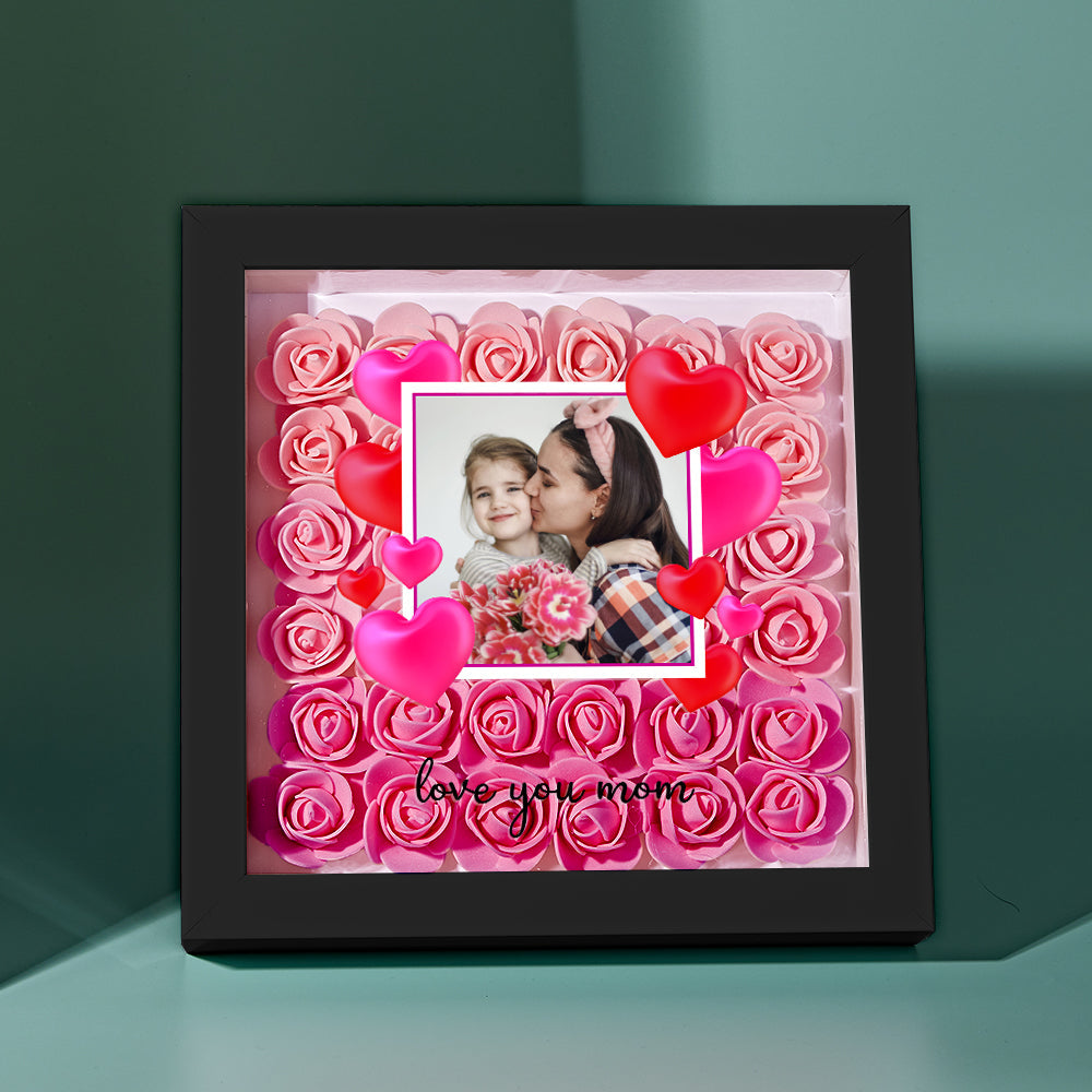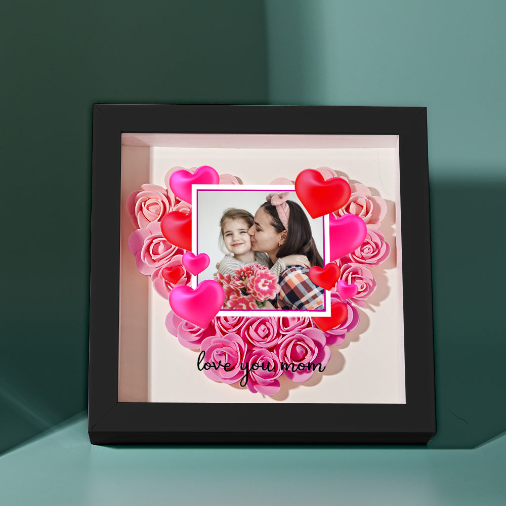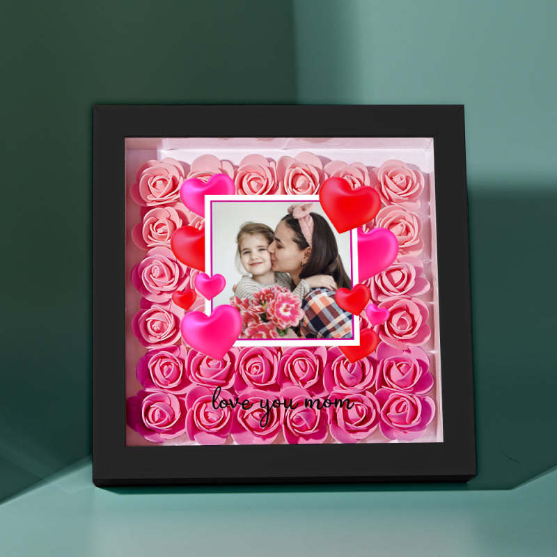 Photo Personnalisée Fleur Shadow Box Personnalisé Dégradé Rose Fleur Shadowbox Cadre Cadeau Pour Maman