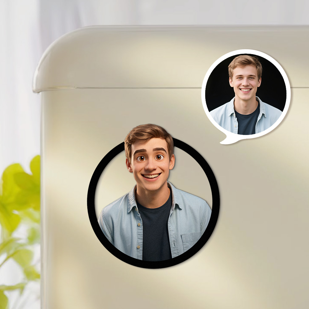 Emportez un peu de joie partout avec vous ! Notre porte-clés photo personnalisé style dessin animé transforme votre photo téléchargée en un charmant dessin animé, imprimé dans un cadre coloré de votre choix. Un accessoire amusant et personnel, idéal comme cadeau ou souvenir du quotidien !