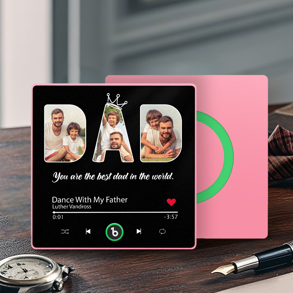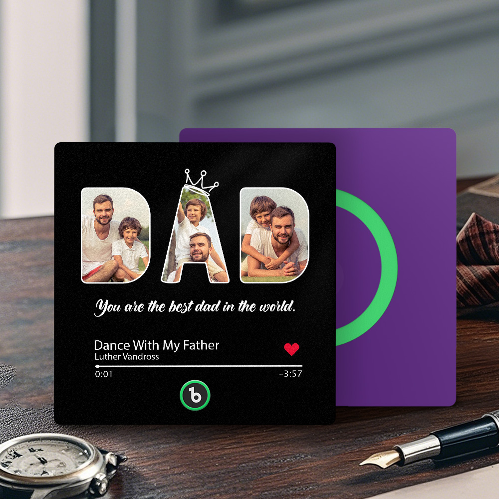Surprenez votre papa avec une touche personnelle ! Notre aimant de réfrigérateur personnalisé « Musique pour papa » est un cadeau attentionné qui lui fera sourire à chaque fois qu'il ouvrira le réfrigérateur. Ajoutez un message spécial ou une chanson pour un cadeau unique et touchant.