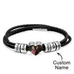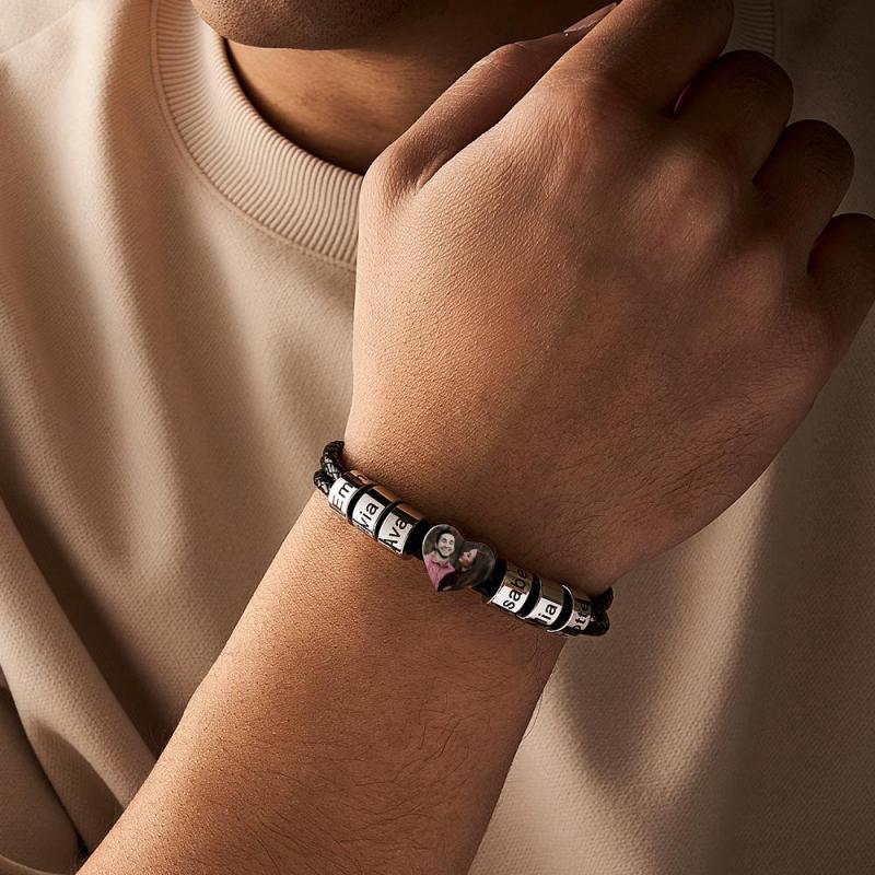 Bracelet Personnalisé Avec Nom Et Photo, Cadeau En Cuir Tissé Pour Papa