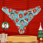Photo Personnalisée Culotte Visage Personnalisé Bleu String Sous-vêtements Cadeaux De Noël Pour Les Femmes