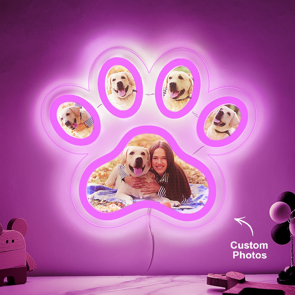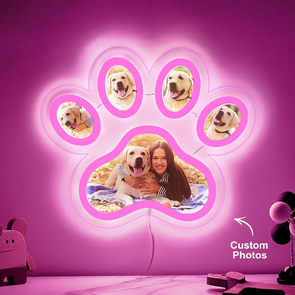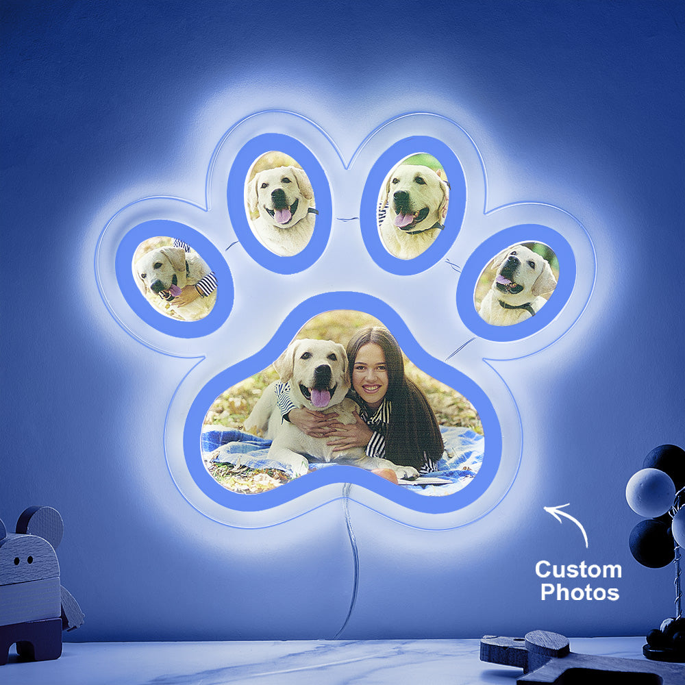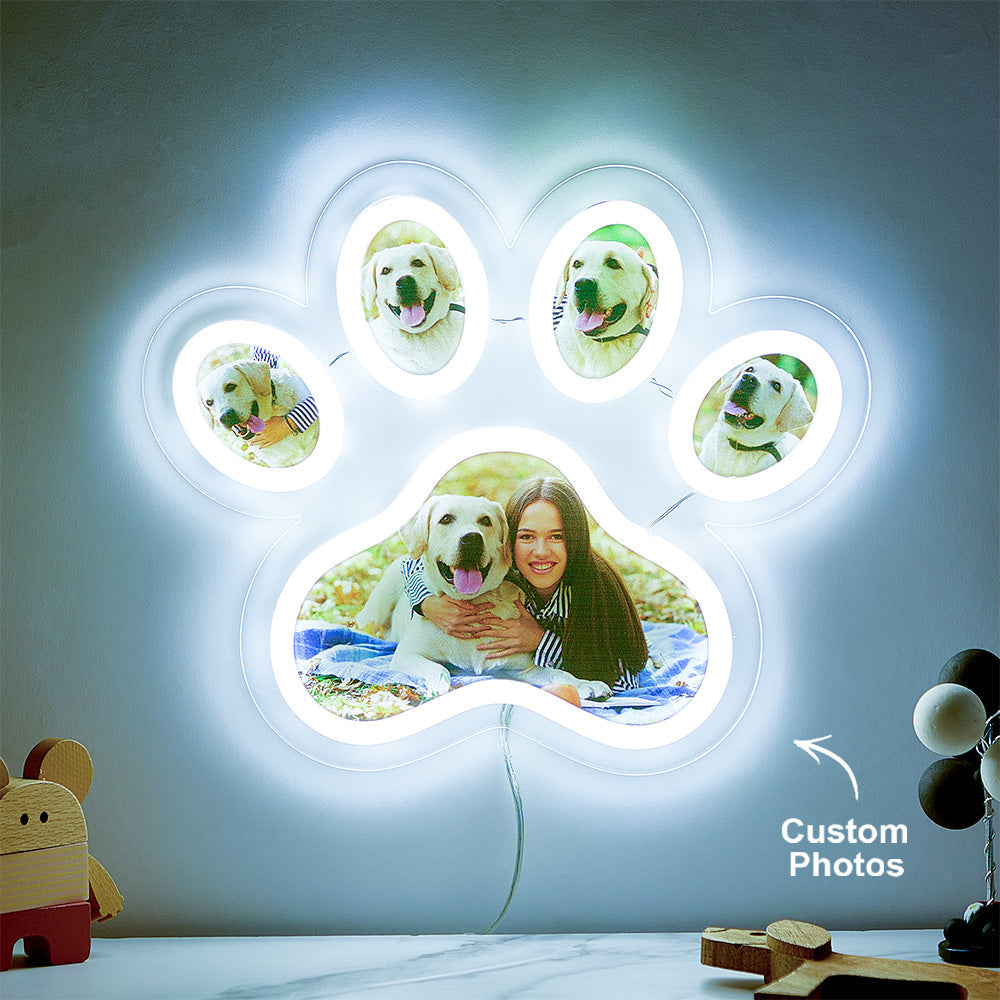 Lampe Néon Avec Photo Personnalisée En Forme De Patte D'animal De Compagnie, Veilleuse Commémorative Personnalisée À Luminosité Réglable, Cadeaux Pour Elle