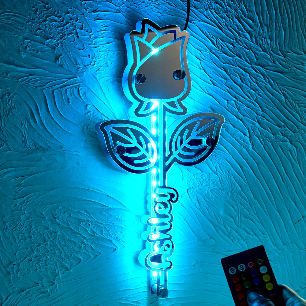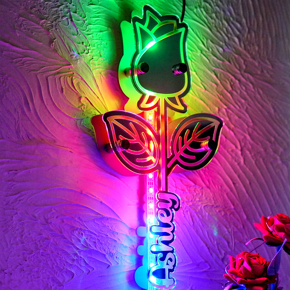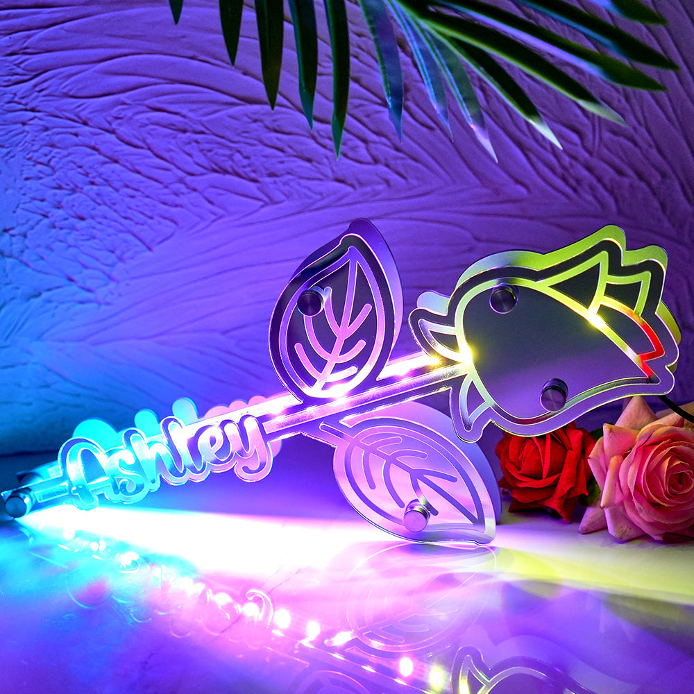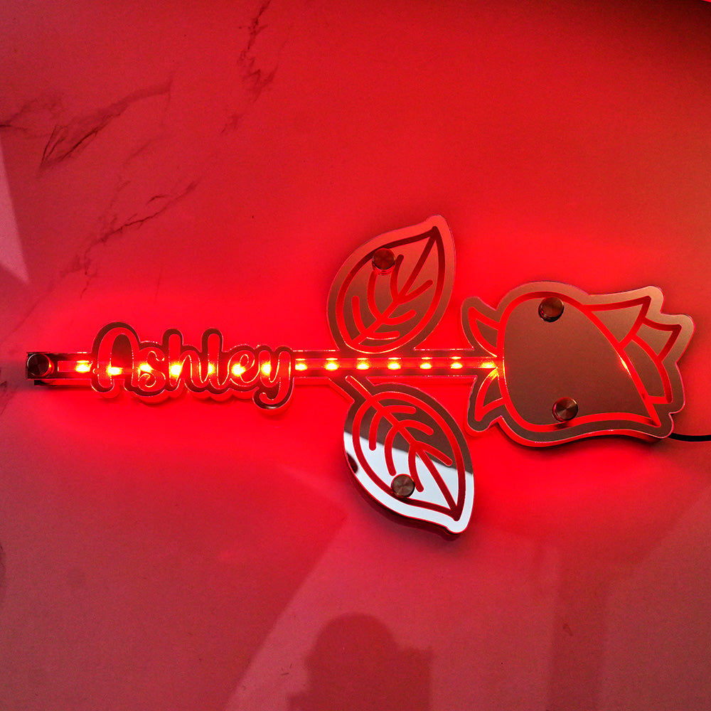 Lumière De Miroir Rose Personnalisée Avec Nom, Cadeau Personnalisé Pour Elle