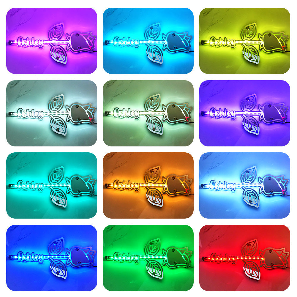 Ce miroir prénom personnalisé super élégant avec éclairage LED est une édition parfaite et unique pour la chambre de votre amour, il adorera éclairer le miroir personnalisé et voir son nom dans les lumières. Ce miroir prénom personnalisé accrocheur est le cadeau parfait et il sera chéri et aimé pendant de nombreuses années par le destinataire. Comprend une télécommande pour l'éclairage LED et des supports de montage mural chromés.