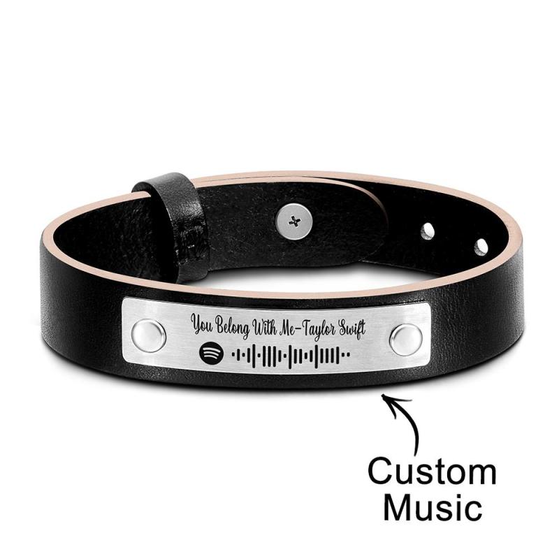 Bracelet Soundwaves Personnalisé En Cuir Cadeaux De Musique Créative