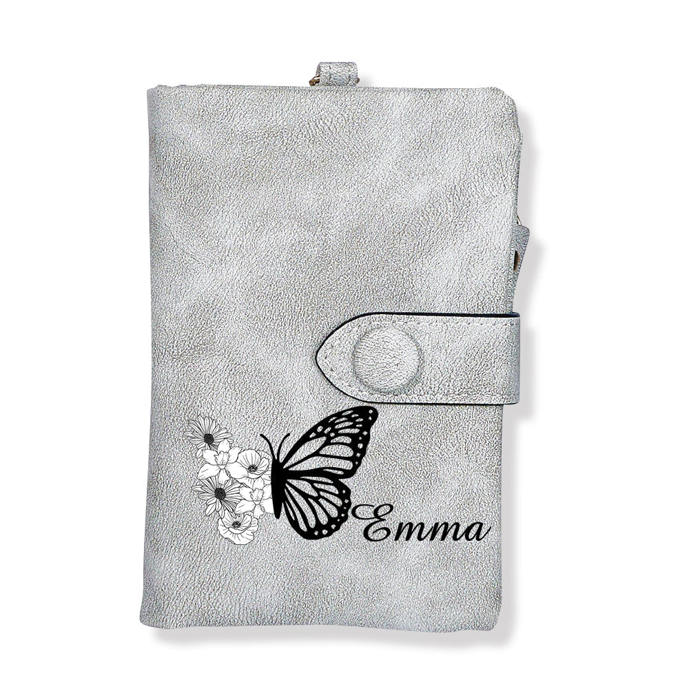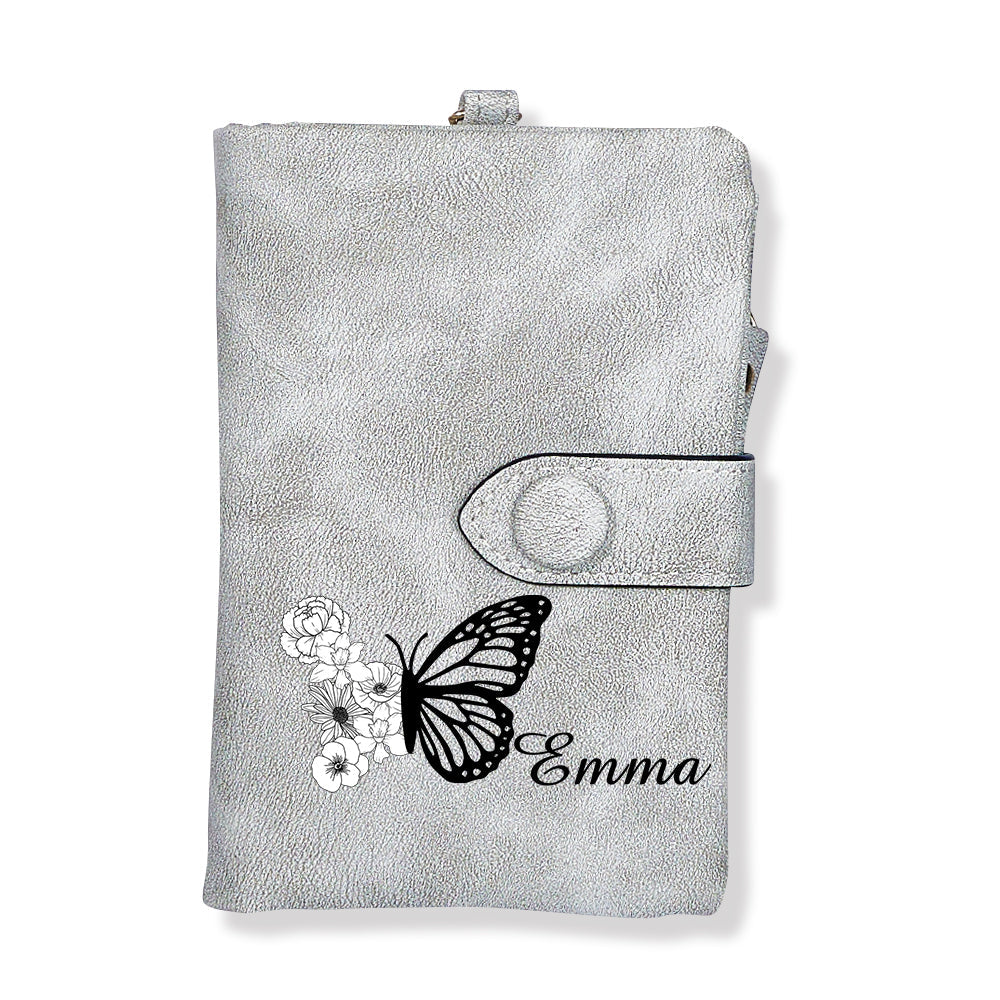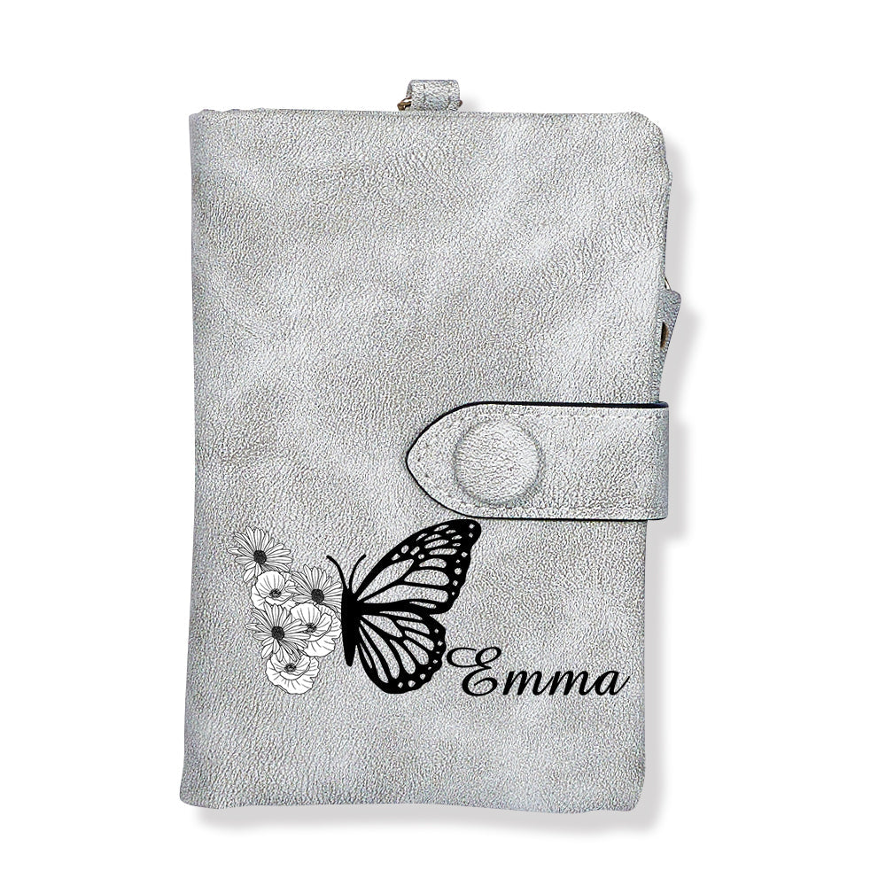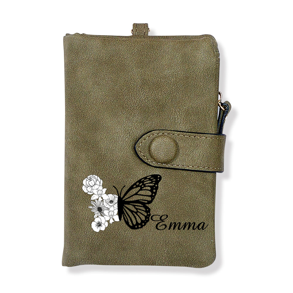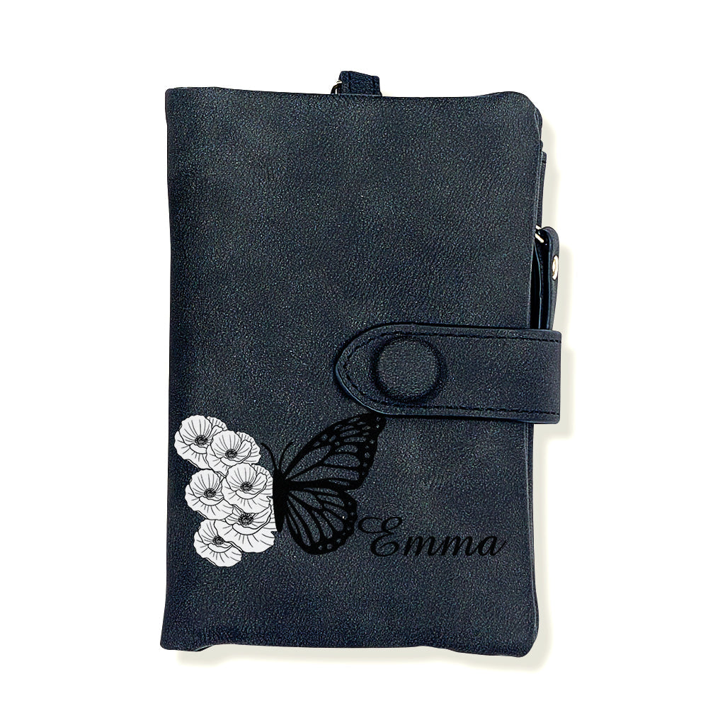 Portefeuille En Cuir Personnalisé À Trois Volets Avec Fleur De Naissance Papillon Et Porte-monnaie, Cadeau Personnalisé Pour La Fête Des Mères Pour Femme